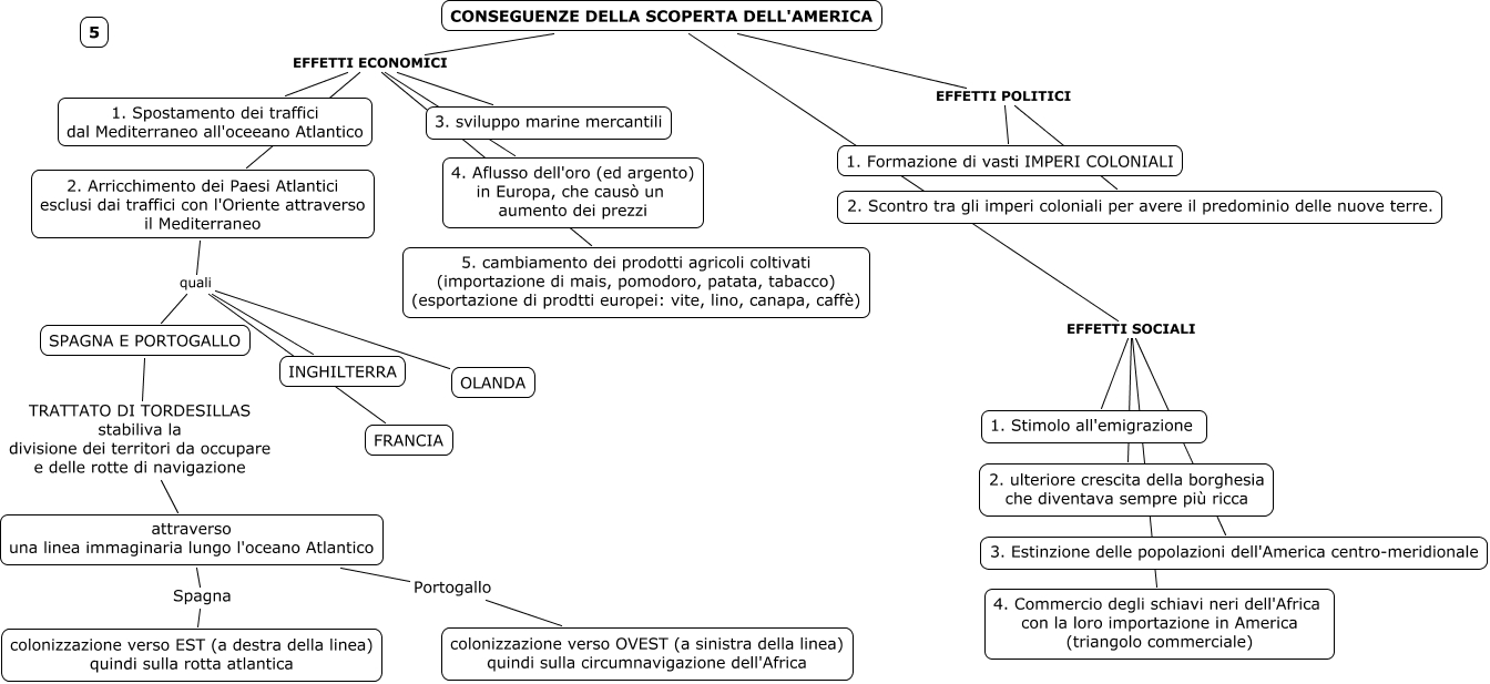 Questa Cmap, creata con IHMC CmapTools, contiene informazioni relative a: 5.conseguenze_scoperta_America, CONSEGUENZE DELLA SCOPERTA DELL'AMERICA EFFETTI SOCIALI 2. ulteriore crescita della borghesia che diventava sempre più ricca, CONSEGUENZE DELLA SCOPERTA DELL'AMERICA EFFETTI SOCIALI 4. Commercio degli schiavi neri dell'Africa con la loro importazione in America (triangolo commerciale), CONSEGUENZE DELLA SCOPERTA DELL'AMERICA EFFETTI ECONOMICI 5. cambiamento dei prodotti agricoli coltivati (importazione di mais, pomodoro, patata, tabacco) (esportazione di prodtti europei: vite, lino, canapa, caffè), attraverso una linea immaginaria lungo l'oceano Atlantico Spagna colonizzazione verso EST (a destra della linea) quindi sulla rotta atlantica, CONSEGUENZE DELLA SCOPERTA DELL'AMERICA EFFETTI POLITICI 2. Scontro tra gli imperi coloniali per avere il predominio delle nuove terre., CONSEGUENZE DELLA SCOPERTA DELL'AMERICA EFFETTI SOCIALI 1. Stimolo all'emigrazione, 2. Arricchimento dei Paesi Atlantici esclusi dai traffici con l'Oriente attraverso il Mediterraneo quali SPAGNA E PORTOGALLO, CONSEGUENZE DELLA SCOPERTA DELL'AMERICA EFFETTI ECONOMICI 4. Aflusso dell'oro (ed argento) in Europa, che causò un aumento dei prezzi, attraverso una linea immaginaria lungo l'oceano Atlantico Portogallo colonizzazione verso OVEST (a sinistra della linea) quindi sulla circumnavigazione dell'Africa, CONSEGUENZE DELLA SCOPERTA DELL'AMERICA EFFETTI ECONOMICI 2. Arricchimento dei Paesi Atlantici esclusi dai traffici con l'Oriente attraverso il Mediterraneo, CONSEGUENZE DELLA SCOPERTA DELL'AMERICA EFFETTI POLITICI 1. Formazione di vasti IMPERI COLONIALI, 2. Arricchimento dei Paesi Atlantici esclusi dai traffici con l'Oriente attraverso il Mediterraneo quali OLANDA, 2. Arricchimento dei Paesi Atlantici esclusi dai traffici con l'Oriente attraverso il Mediterraneo quali FRANCIA, CONSEGUENZE DELLA SCOPERTA DELL'AMERICA EFFETTI SOCIALI 3. Estinzione delle popolazioni dell'America centro-meridionale, CONSEGUENZE DELLA SCOPERTA DELL'AMERICA EFFETTI ECONOMICI 1. Spostamento dei traffici dal Mediterraneo all'oceeano Atlantico, CONSEGUENZE DELLA SCOPERTA DELL'AMERICA EFFETTI ECONOMICI 3. sviluppo marine mercantili, SPAGNA E PORTOGALLO TRATTATO DI TORDESILLAS stabiliva la divisione dei territori da occupare e delle rotte di navigazione attraverso una linea immaginaria lungo l'oceano Atlantico, 2. Arricchimento dei Paesi Atlantici esclusi dai traffici con l'Oriente attraverso il Mediterraneo quali INGHILTERRA
