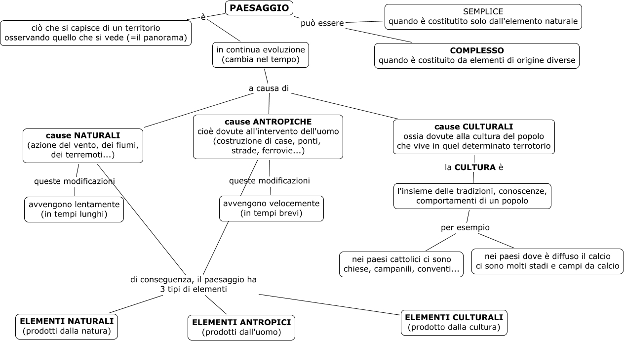 Questa Cmap, creata con IHMC CmapTools, contiene informazioni relative a: 9.Il paesaggio_gli_elementi, cause ANTROPICHE cioè dovute all'intervento dell'uomo (costruzione di case, ponti, strade, ferrovie...) di conseguenza, il paesaggio ha 3 tipi di elementi ELEMENTI ANTROPICI (prodotti dall'uomo), PAESAGGIO può essere COMPLESSO quando è costituito da elementi di origine diverse, cause NATURALI (azione del vento, dei fiumi, dei terremoti...) queste modificazioni avvengono lentamente (in tempi lunghi), cause ANTROPICHE cioè dovute all'intervento dell'uomo (costruzione di case, ponti, strade, ferrovie...) queste modificazioni avvengono velocemente (in tempi brevi), l'insieme delle tradizioni, conoscenze, comportamenti di un popolo per esempio nei paesi dove è diffuso il calcio ci sono molti stadi e campi da calcio, cause NATURALI (azione del vento, dei fiumi, dei terremoti...) di conseguenza, il paesaggio ha 3 tipi di elementi ELEMENTI ANTROPICI (prodotti dall'uomo), l'insieme delle tradizioni, conoscenze, comportamenti di un popolo per esempio nei paesi cattolici ci sono chiese, campanili, conventi..., PAESAGGIO può essere SEMPLICE quando è costitutito solo dall'elemento naturale, cause ANTROPICHE cioè dovute all'intervento dell'uomo (costruzione di case, ponti, strade, ferrovie...) di conseguenza, il paesaggio ha 3 tipi di elementi ELEMENTI NATURALI (prodotti dalla natura), cause NATURALI (azione del vento, dei fiumi, dei terremoti...) di conseguenza, il paesaggio ha 3 tipi di elementi ELEMENTI CULTURALI (prodotto dalla cultura), PAESAGGIO è ciò che si capisce di un territorio osservando quello che si vede (=il panorama), in continua evoluzione (cambia nel tempo) a causa di cause ANTROPICHE cioè dovute all'intervento dell'uomo (costruzione di case, ponti, strade, ferrovie...), cause NATURALI (azione del vento, dei fiumi, dei terremoti...) di conseguenza, il paesaggio ha 3 tipi di elementi ELEMENTI NATURALI (prodotti dalla natura), cause CULTURALI ossia dovute alla cultura del popolo che vive in quel determinato terrotorio la CULTURA è l'insieme delle tradizioni, conoscenze, comportamenti di un popolo, in continua evoluzione (cambia nel tempo) a causa di cause CULTURALI ossia dovute alla cultura del popolo che vive in quel determinato terrotorio, in continua evoluzione (cambia nel tempo) a causa di cause NATURALI (azione del vento, dei fiumi, dei terremoti...), cause ANTROPICHE cioè dovute all'intervento dell'uomo (costruzione di case, ponti, strade, ferrovie...) di conseguenza, il paesaggio ha 3 tipi di elementi ELEMENTI CULTURALI (prodotto dalla cultura), PAESAGGIO è in continua evoluzione (cambia nel tempo)