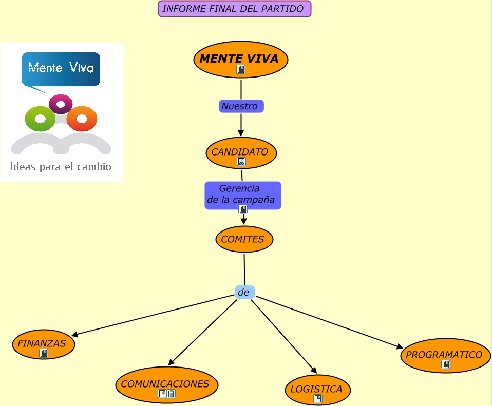 Este Cmap, tiene información relacionada con: INFORME PARTIDO MENTE VIVA, CANDIDATO Gerencia de la campaña COMITES, COMITES de LOGISTICA, COMITES de COMUNICACIONES, COMITES de FINANZAS, MENTE VIVA Nuestro CANDIDATO, COMITES de PROGRAMATICO