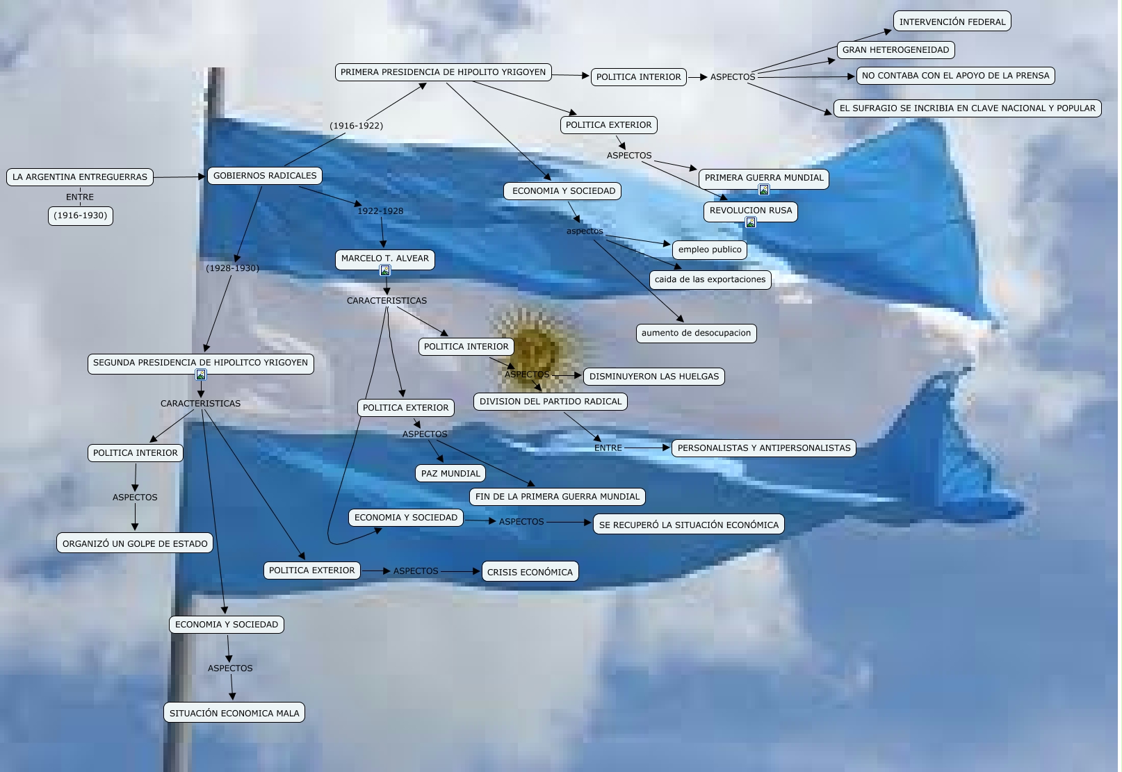 Este Cmap, tiene información relacionada con: ARGENTINA ENTREGUERRAS, LA ARGENTINA ENTREGUERRAS ENTRE (1916-1930), POLITICA INTERIOR ASPECTOS GRAN HETEROGENEIDAD, ECONOMIA Y SOCIEDAD aspectos aumento de desocupacion, ECONOMIA Y SOCIEDAD aspectos empleo publico, POLITICA EXTERIOR ASPECTOS PRIMERA GUERRA MUNDIAL, POLITICA EXTERIOR ASPECTOS FIN DE LA PRIMERA GUERRA MUNDIAL, MARCELO T. ALVEAR CARACTERISTICAS POLITICA INTERIOR, GOBIERNOS RADICALES (1928-1930) SEGUNDA PRESIDENCIA DE HIPOLITCO YRIGOYEN, MARCELO T. ALVEAR CARACTERISTICAS ECONOMIA Y SOCIEDAD, ECONOMIA Y SOCIEDAD ASPECTOS SE RECUPERÓ LA SITUACIÓN ECONÓMICA, SEGUNDA PRESIDENCIA DE HIPOLITCO YRIGOYEN CARACTERISTICAS POLITICA INTERIOR, MARCELO T. ALVEAR CARACTERISTICAS POLITICA EXTERIOR, POLITICA INTERIOR ASPECTOS EL SUFRAGIO SE INCRIBIA EN CLAVE NACIONAL Y POPULAR, POLITICA INTERIOR ASPECTOS DISMINUYERON LAS HUELGAS, ECONOMIA Y SOCIEDAD ASPECTOS SITUACIÓN ECONOMICA MALA, GOBIERNOS RADICALES 1922-1928 MARCELO T. ALVEAR, POLITICA INTERIOR ASPECTOS INTERVENCIÓN FEDERAL, ECONOMIA Y SOCIEDAD aspectos caida de las exportaciones, POLITICA INTERIOR ASPECTOS ORGANIZÓ UN GOLPE DE ESTADO, GOBIERNOS RADICALES (1916-1922) PRIMERA PRESIDENCIA DE HIPOLITO YRIGOYEN