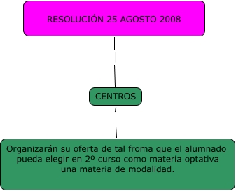 Este Cmap, tiene información relacionada con: RESOLUCIÓN 25 AGOSTO, CENTROS Organizarán su oferta de tal froma que el alumnado pueda elegir en 2º curso como materia optativa una materia de modalidad., RESOLUCIÓN 25 AGOSTO 2008 CENTROS