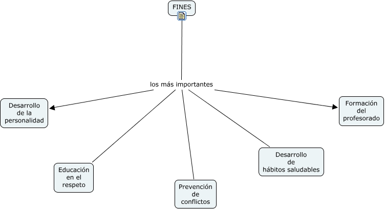 Este Cmap, tiene información relacionada con: Fines LOE, FINES los más importantes Educación en el respeto, FINES los más importantes Formación del profesorado, FINES los más importantes Prevención de conflictos, FINES los más importantes Desarrollo de la personalidad, FINES los más importantes Desarrollo de hábitos saludables