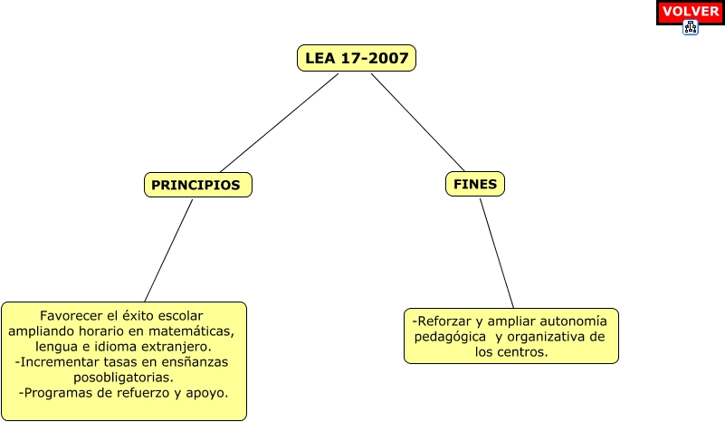 Este Cmap, tiene información relacionada con: LEA PRINCIPIOS Y FINES, PRINCIPIOS ???? Favorecer el éxito escolar ampliando horario en matemáticas, lengua e idioma extranjero. -Incrementar tasas en ensñanzas posobligatorias. -Programas de refuerzo y apoyo., FINES ???? -Reforzar y ampliar autonomía pedagógica y organizativa de los centros., LEA 17-2007 ???? FINES, LEA 17-2007 ???? PRINCIPIOS