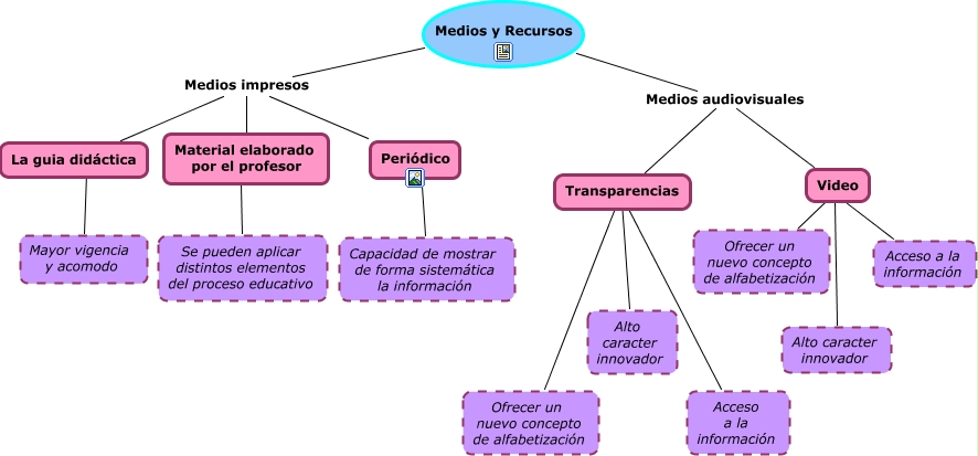 Este Cmap, tiene información relacionada con: Mapa Medios1, Periódico ???? Capacidad de mostrar de forma sistemática la información, Material elaborado por el profesor ???? Se pueden aplicar distintos elementos del proceso educativo, Medios y Recursos Medios impresos Material elaborado por el profesor, Transparencias para Ofrecer un nuevo concepto de alfabetización, Medios y Recursos Medios audiovisuales Video, Transparencias para Acceso a la información, Transparencias para Alto caracter innovador, La guia didáctica ???? Mayor vigencia y acomodo, Medios y Recursos Medios audiovisuales Transparencias, Medios y Recursos Medios impresos La guia didáctica, Video ???? Alto caracter innovador, Video ???? Acceso a la información, Medios y Recursos Medios impresos Periódico, Video ???? Ofrecer un nuevo concepto de alfabetización