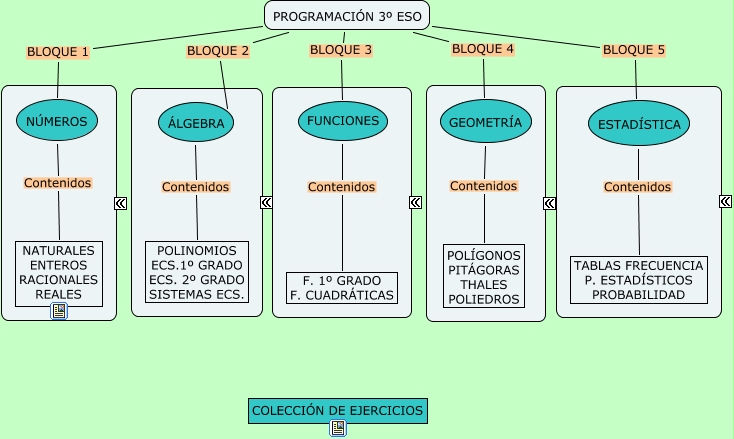 Este Cmap, tiene información relacionada con: PROG. 3º ESO, PROGRAMACIÓN 3º ESO BLOQUE 5 ESTADÍSTICA, PROGRAMACIÓN 3º ESO BLOQUE 3 FUNCIONES, GEOMETRÍA Contenidos POLÍGONOS PITÁGORAS THALES POLIEDROS, PROGRAMACIÓN 3º ESO BLOQUE 1 NÚMEROS, FUNCIONES Contenidos F. 1º GRADO F. CUADRÁTICAS, ÁLGEBRA Contenidos POLINOMIOS ECS.1º GRADO ECS. 2º GRADO SISTEMAS ECS., PROGRAMACIÓN 3º ESO BLOQUE 4 GEOMETRÍA, NÚMEROS Contenidos NATURALES ENTEROS RACIONALES REALES, PROGRAMACIÓN 3º ESO BLOQUE 2 ÁLGEBRA, ESTADÍSTICA Contenidos TABLAS FRECUENCIA P. ESTADÍSTICOS PROBABILIDAD