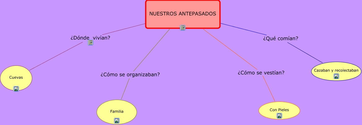 Este Cmap, tiene información relacionada con: Nuestros antepasados 1, NUESTROS ANTEPASADOS ¿Qué comían? Cazaban y recolectaban, NUESTROS ANTEPASADOS ¿Cómo se vestían? Con Pieles, NUESTROS ANTEPASADOS ¿Dónde vivían? Cuevas, NUESTROS ANTEPASADOS ¿Cómo se organizaban? Familia