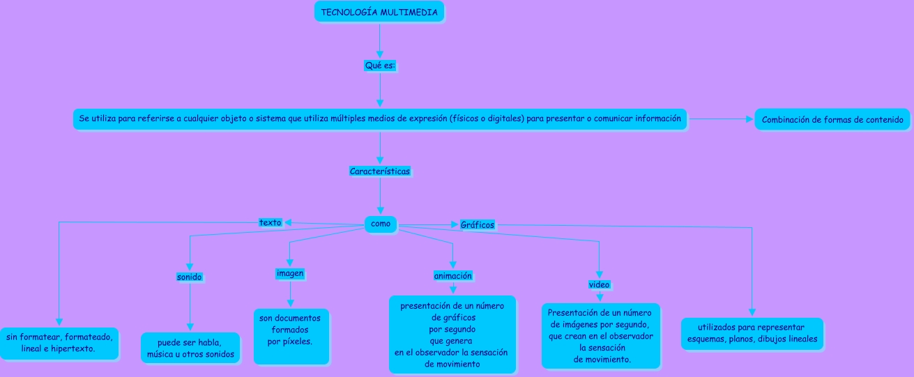 Este Cmap, tiene información relacionada con: taller 1 características multimedia, como sonido puede ser habla, música u otros sonidos, como imagen son documentos formados por píxeles., como Gráficos utilizados para representar esquemas, planos, dibujos lineales, Se utiliza para referirse a cualquier objeto o sistema que utiliza múltiples medios de expresión (físicos o digitales) para presentar o comunicar información ???? Combinación de formas de contenido, como texto sin formatear, formateado, lineal e hipertexto., como video Presentación de un número de imágenes por segundo, que crean en el observador la sensación de movimiento., Se utiliza para referirse a cualquier objeto o sistema que utiliza múltiples medios de expresión (físicos o digitales) para presentar o comunicar información Características como, TECNOLOGÍA MULTIMEDIA Qué es: Se utiliza para referirse a cualquier objeto o sistema que utiliza múltiples medios de expresión (físicos o digitales) para presentar o comunicar información, como animación presentación de un número de gráficos por segundo que genera en el observador la sensación de movimiento