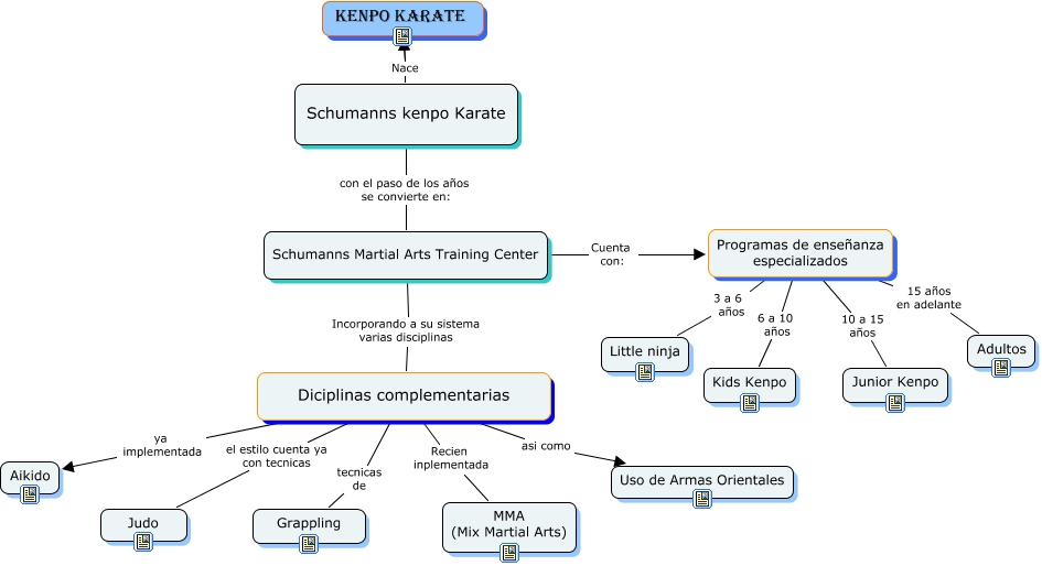 Este Cmap, tiene información relacionada con: KEnpo karate, Schumanns kenpo Karate Nace Kenpo karate, Diciplinas complementarias asi como Uso de Armas Orientales, Diciplinas complementarias Recien inplementada MMA (Mix Martial Arts), Programas de enseñanza especializados 10 a 15 años Junior Kenpo, Schumanns Martial Arts Training Center Incorporando a su sistema varias disciplinas Diciplinas complementarias, Diciplinas complementarias ya implementada Aikido, Programas de enseñanza especializados 15 años en adelante Adultos, Diciplinas complementarias tecnicas de Grappling, Programas de enseñanza especializados 3 a 6 años Little ninja, Schumanns Martial Arts Training Center Cuenta con: Programas de enseñanza especializados, Schumanns kenpo Karate Nace Kenpo karate, Programas de enseñanza especializados 6 a 10 años Kids Kenpo, Schumanns kenpo Karate con el paso de los años se convierte en: Schumanns Martial Arts Training Center, Diciplinas complementarias el estilo cuenta ya con tecnicas Judo