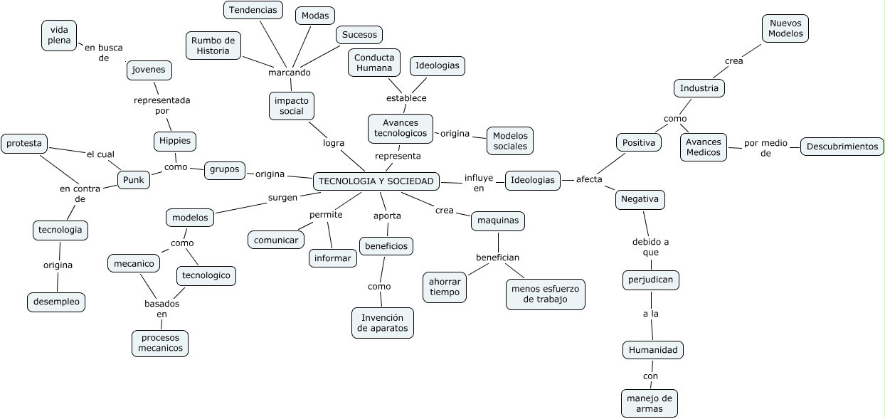 Este Cmap, tiene información relacionada con: KEVIN, grupos como Hippies, Punk el cual protesta, modelos como tecnologico, maquinas benefician menos esfuerzo de trabajo, impacto social marcando Rumbo de Historia, Hippies representada por jovenes, TECNOLOGIA Y SOCIEDAD aporta beneficios, TECNOLOGIA Y SOCIEDAD origina grupos, TECNOLOGIA Y SOCIEDAD influye en Ideologias, TECNOLOGIA Y SOCIEDAD logra impacto social, Positiva como Avances Medicos, Positiva como Industria, maquinas benefician ahorrar tiempo, Avances Medicos por medio de Descubrimientos, Avances tecnologicos establece Conducta Humana, beneficios como Invención de aparatos, TECNOLOGIA Y SOCIEDAD representa Avances tecnologicos, impacto social marcando Sucesos, TECNOLOGIA Y SOCIEDAD permite comunicar, Ideologias afecta Negativa