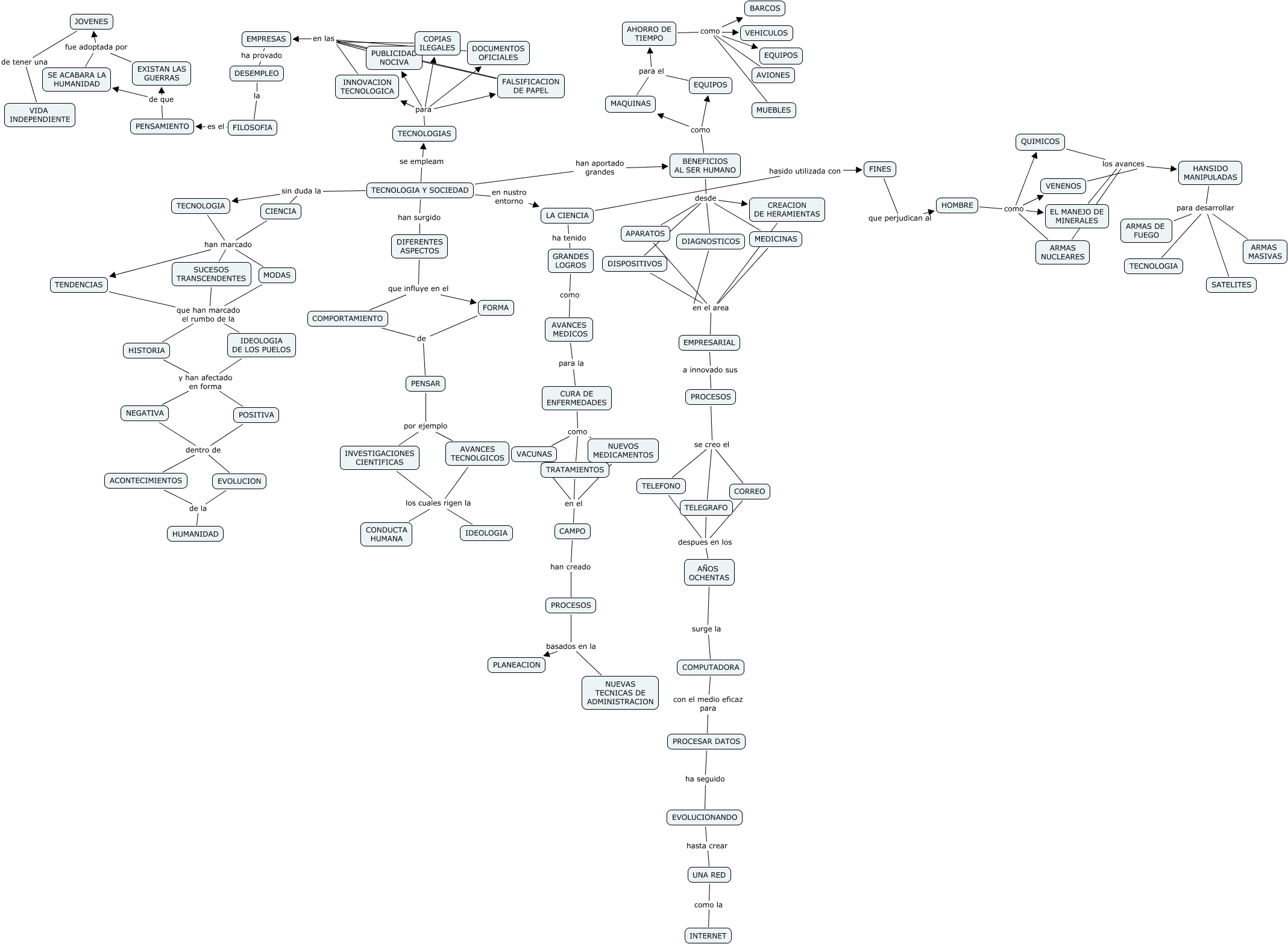 Este Cmap, tiene información relacionada con: MILADY, MODAS que han marcado el rumbo de la IDEOLOGIA DE LOS PUELOS, POSITIVA dentro de EVOLUCION, TELEGRAFO despues en los AÑOS OCHENTAS, HANSIDO MANIPULADAS para desarrollar TECNOLOGIA, PENSAMIENTO de que EXISTAN LAS GUERRAS, CURA DE ENFERMEDADES como NUEVOS MEDICAMENTOS, COPIAS ILEGALES en las EMPRESAS, HOMBRE como VENENOS, BENEFICIOS AL SER HUMANO como MAQUINAS, DOCUMENTOS OFICIALES en las EMPRESAS, COMPUTADORA con el medio eficaz para PROCESAR DATOS, PUBLICIDAD NOCIVA en las EMPRESAS, MEDICINAS en el area EMPRESARIAL, AÑOS OCHENTAS surge la COMPUTADORA, TECNOLOGIA Y SOCIEDAD han surgido DIFERENTES ASPECTOS, MAQUINAS para el AHORRO DE TIEMPO, HANSIDO MANIPULADAS para desarrollar ARMAS MASIVAS, CURA DE ENFERMEDADES como TRATAMIENTOS, HOMBRE como ARMAS NUCLEARES, TECNOLOGIA Y SOCIEDAD en nustro entorno LA CIENCIA
