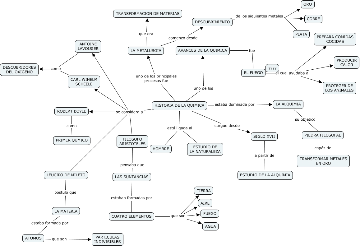 Este Cmap, tiene información relacionada con: Historia De La Quimica (SEBASTIAN BASTIDAS), EL FUEGO el cual ayudaba a PRODUCIR CALOR, PIEDRA FILOSOFAL capáz de TRANSFORMAR METALES EN ORO, DESCUBRIMIENTO de los siguientes metales ORO, HISTORIA DE LA QUIMICA uno de los principales procesos fue LA METALURGIA, AVANCES DE LA QUIMICA fué EL FUEGO, HISTORIA DE LA QUIMICA surgue desde SIGLO XVII, SIGLO XVII a partir de ESTUDIO DE LA ALQUIMIA, DESCUBRIMIENTO de los siguientes metales PLATA, ANTOINE LAVOISIER como DESCUBRIDORES DEL OXIGENO, EL FUEGO el cual ayudaba a PREPARA COMIDAS COCIDAS, HISTORIA DE LA QUIMICA se considera a CARL WIHELM SCHEELE, HISTORIA DE LA QUIMICA se considera a ANTOINE LAVOISIER, CUATRO ELEMENTOS que son FUEGO, LA METALURGIA comenzo desde DESCUBRIMIENTO, HISTORIA DE LA QUIMICA se considera a LEUCIPO DE MILETO, CUATRO ELEMENTOS que son TIERRA, HISTORIA DE LA QUIMICA se considera a ROBERT BOYLE, CARL WIHELM SCHEELE como DESCUBRIDORES DEL OXIGENO, LA METALURGIA que era TRANSFORMACION DE MATERIAS, CUATRO ELEMENTOS que son AIRE