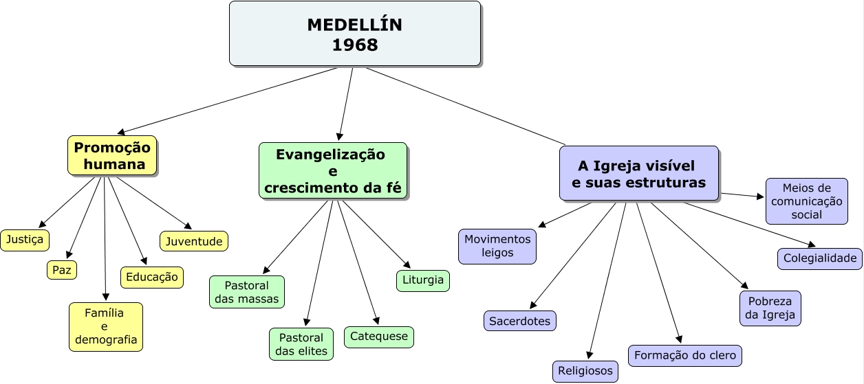 Questa Mappa Concettuale ha informazioni correlate a: MedellínDani, A Igreja visível e suas estruturas ???? Meios de comunicação social, MEDELLÍN 1968 ???? Evangelização e crescimento da fé, Evangelização e crescimento da fé ???? Catequese, A Igreja visível e suas estruturas ???? Formação do clero, A Igreja visível e suas estruturas ???? Religiosos, Evangelização e crescimento da fé ???? Liturgia, Promoção humana ???? Educação, Promoção humana ???? Justiça, Evangelização e crescimento da fé ???? Pastoral das massas, Promoção humana ???? Juventude, Evangelização e crescimento da fé ???? Pastoral das elites, A Igreja visível e suas estruturas ???? Colegialidade, Promoção humana ???? Paz, A Igreja visível e suas estruturas ???? Pobreza da Igreja, MEDELLÍN 1968 ???? A Igreja visível e suas estruturas, Promoção humana ???? Família e demografia, A Igreja visível e suas estruturas ???? Sacerdotes, A Igreja visível e suas estruturas ???? Movimentos leigos, MEDELLÍN 1968 ???? Promoção humana