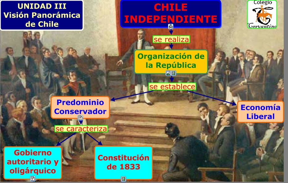 Este Cmap, tiene información relacionada con: Unidad VI Chile Indepediente y Organización de la República, Predominio Conservador se caracteriza Gobierno autoritario y oligárquico, CHILE INDEPENDIENTE se realiza Organización de la República, Predominio Conservador se caracteriza Constitución de 1833, Predominio Conservador se caracteriza Gobierno autoritario y oligárquico, Organización de la República se establece Predominio Conservador, Organización de la República se establece Economía Liberal