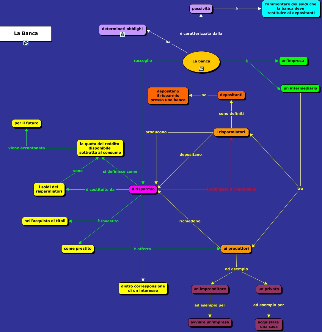 Che cos'è una banca, i risparmiatori depositano il risparmio, La banca è un’impresa, un privato ad esempio per acquistare una casa, ai produttori richiedono il risparmio, i soldi dei risparmiatori sono la quota del reddito disponibile sottratta al consumo, La banca ha determinati obblighi, La banca è un intermediario, passività è l'ammontare dei soldi che la banca deve restituire ai depositanti, depositanti se depositano il risparmio presso una banca, ai produttori ad esempio un privato