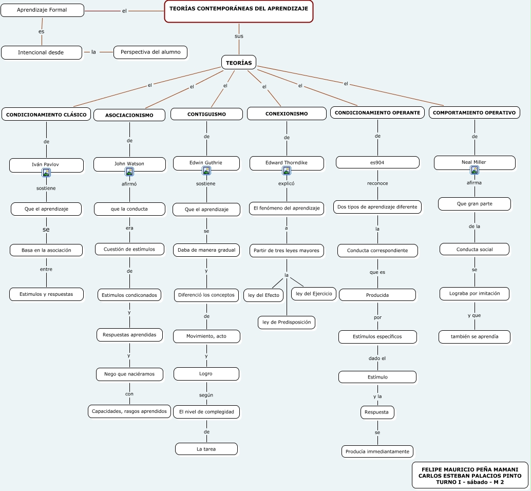 Este Cmap, tiene información relacionada con: Aprendizaje, Partir de tres leyes mayores la ley del Ejercicio, Partir de tres leyes mayores la ley de Predisposición, Basa en la asociación entre Estimulos y respuestas, TEORÍAS CONTEMPORÁNEAS DEL APRENDIZAJE el Aprendizaje Formal, es904 reconoce Dos tipos de aprendizaje diferente, Respuesta se Producía immediantamente, Lograba por imitación y que también se aprendía, Intencional desde la Perspectiva del alumno, TEORÍAS el CONEXIONISMO, Daba de manera gradual y Diferenció los conceptos, TEORÍAS CONTEMPORÁNEAS DEL APRENDIZAJE sus TEORÍAS, Dos tipos de aprendizaje diferente la Conducta correspondiente, El nivel de complegidad de La tarea, COMPORTAMIENTO OPERATIVO de Neal Miller, Estímulos específicos dado el Estímulo, Que el aprendizaje se Basa en la asociación, El fenómeno del aprendizaje a Partir de tres leyes mayores, Que gran parte de la Conducta social, Iván Pavlov sostiene Que el aprendizaje, TEORÍAS el COMPORTAMIENTO OPERATIVO