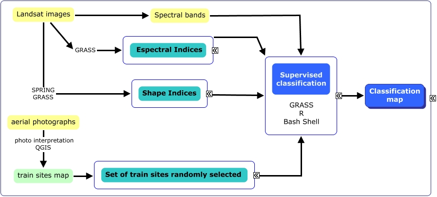 Este Cmap, tiene información relacionada con: Metodología V CS ing last, Landsat images SPRING GRASS ????, Landsat images Spectral bands, ???? ????, ???? ????, aerial photographs photo interpretation QGIS train sites map, train sites map ????, ???? Classification map, Spectral bands ????, Landsat images GRASS ????, ???? ????