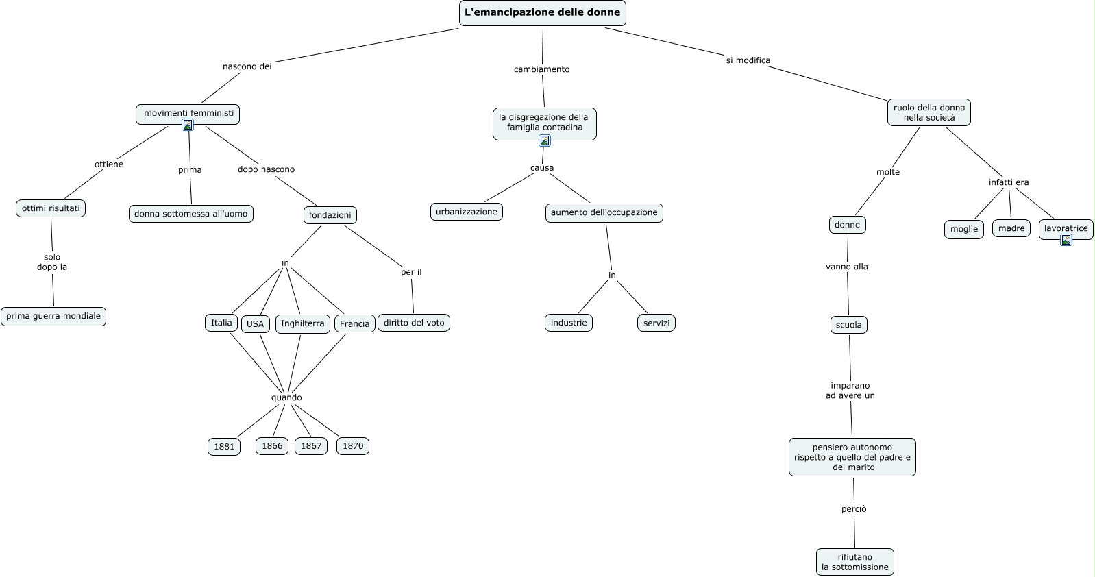 Questa Cmap, creata con IHMC CmapTools, contiene informazioni relative a: L'emancipazione delle donne, pensiero autonomo rispetto a quello del padre e del marito perciò rifiutano la sottomissione, movimenti femministi dopo nascono fondazioni, fondazioni in Italia, Francia quando 1866, Francia quando 1867, fondazioni per il diritto del voto, aumento dell'occupazione in industrie, Inghilterra quando 1866, ruolo della donna nella società molte donne, Inghilterra quando 1870, Italia quando 1867, ottimi risultati solo dopo la prima guerra mondiale, L'emancipazione delle donne cambiamento la disgregazione della famiglia contadina, movimenti femministi ottiene ottimi risultati, aumento dell'occupazione in servizi, Francia quando 1870, la disgregazione della famiglia contadina causa urbanizzazione, ruolo della donna nella società infatti era lavoratrice, L'emancipazione delle donne nascono dei movimenti femministi, Italia quando 1866