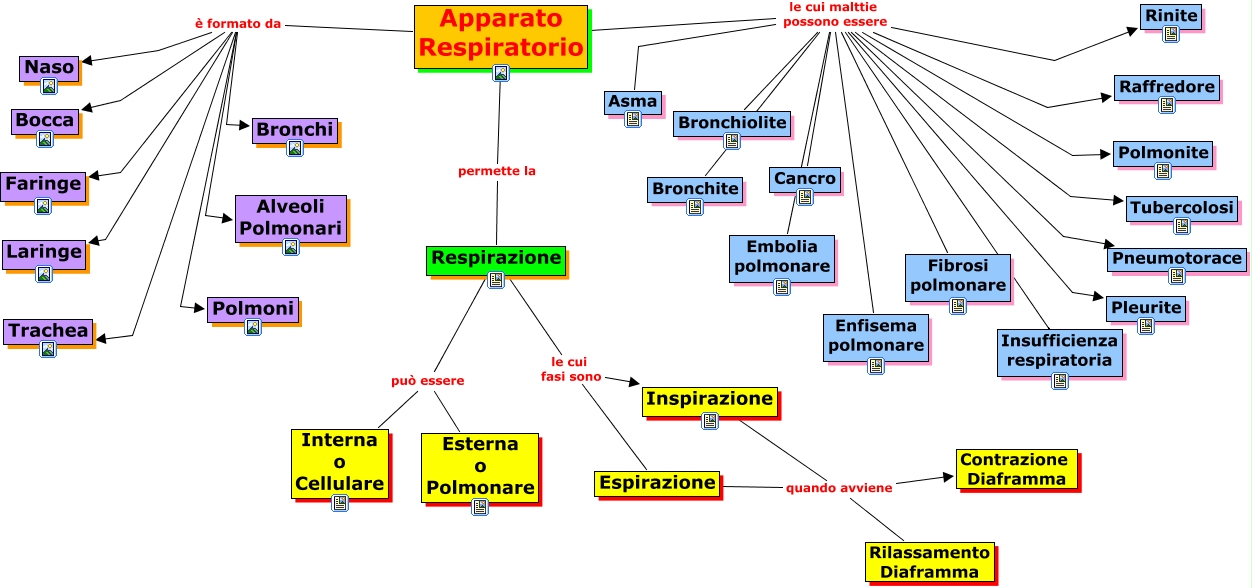 Questa Cmap, creata con IHMC CmapTools, contiene informazioni relative a: apparato respiratorio, Respirazione può essere Esterna o Polmonare, Apparato Respiratorio le cui malttie possono essere Enfisema polmonare, Apparato Respiratorio le cui malttie possono essere Cancro, Inspirazione quando avviene Contrazione Diaframma, Apparato Respiratorio le cui malttie possono essere Pneumotorace, Apparato Respiratorio le cui malttie possono essere Polmonite, Apparato Respiratorio è formato da Polmoni, Apparato Respiratorio è formato da Alveoli Polmonari, Respirazione può essere Interna o Cellulare, Apparato Respiratorio è formato da Bronchi, Apparato Respiratorio le cui malttie possono essere Bronchiolite, Apparato Respiratorio le cui malttie possono essere Asma, Respirazione le cui fasi sono Inspirazione, Apparato Respiratorio le cui malttie possono essere Bronchite, Apparato Respiratorio le cui malttie possono essere Embolia polmonare, Apparato Respiratorio è formato da Bocca, Apparato Respiratorio le cui malttie possono essere Pleurite, Espirazione quando avviene Rilassamento Diaframma, Apparato Respiratorio le cui malttie possono essere Fibrosi polmonare, Respirazione le cui fasi sono Espirazione
