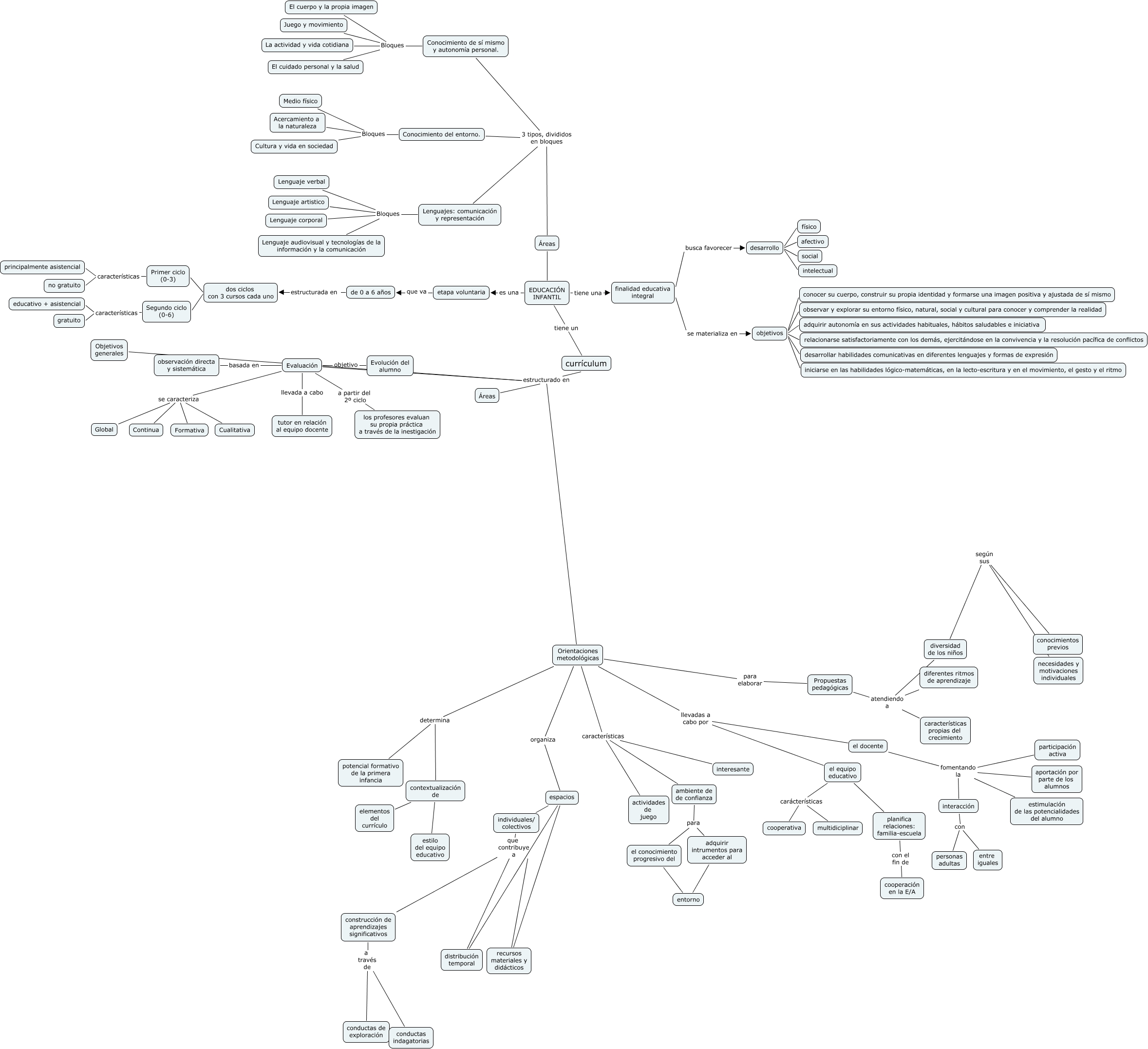 Este Cmap, tiene información relacionada con: didactica proyecto dos, Orientaciones metodológicas determina potencial formativo de la primera infancia, EDUCACIÓN INFANTIL tiene una finalidad educativa integral, ambiente de de confianza para adquirir intrumentos para acceder al, Evaluación se caracteriza Cualitativa, adquirir intrumentos para acceder al entorno, finalidad educativa integral se materializa en objetivos, objetivos relacionarse satisfactoriamente con los demás, ejercitándose en la convivencia y la resolución pacífica de conflictos, Orientaciones metodológicas características actividades de juego, desarrollo social, Orientaciones metodológicas características ambiente de de confianza, distribución temporal que contribuye a construcción de aprendizajes significativos, el equipo educativo carácterísticas cooperativa, Orientaciones metodológicas para elaborar Propuestas pedagógicas, Primer ciclo (0-3) características no gratuito, Lenguajes: comunicación y representación Bloques Lenguaje corporal, Propuestas pedagógicas atendiendo a características propias del crecimiento, EDUCACIÓN INFANTIL es una etapa voluntaria, construcción de aprendizajes significativos a través de conductas indagatorias, currículum estructurado en Evaluación, Segundo ciclo (0-6) características educativo + asistencial