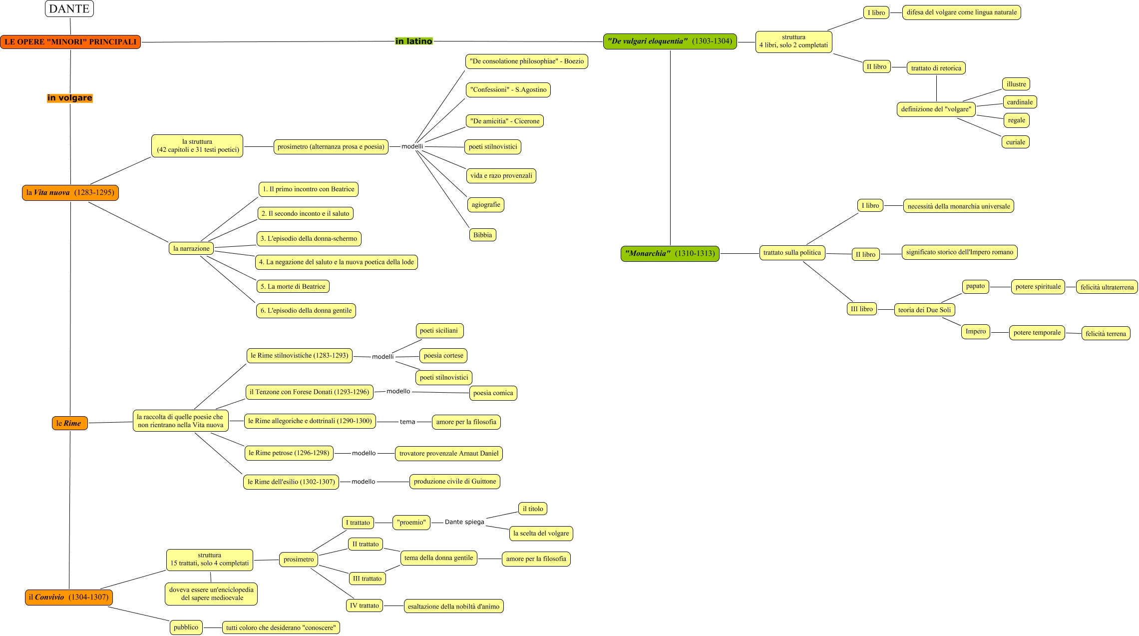 Questa Cmap, creata con IHMC CmapTools, contiene informazioni relative a: Dante opere minori - Acerbis Andrea, la narrazione 6. L'episodio della donna gentile, definizione del "volgare" illustre, "Monarchia" (1310-1313) trattato sulla politica, la narrazione 3. L'episodio della donna-schermo, la raccolta di quelle poesie che non rientrano nella Vita nuova le Rime allegoriche e dottrinali (1290-1300), prosimetro III trattato, definizione del "volgare" cardinale, struttura 4 libri, solo 2 completati I libro, potere temporale felicità terrena, prosimetro II trattato, "proemio" Dante spiega il titolo, la narrazione 2. Il secondo inconto e il saluto, pubblico tutti coloro che desiderano "conoscere", "proemio" Dante spiega la scelta del volgare, il Convivio (1304-1307) struttura 15 trattati, solo 4 completati, potere spirituale felicità ultraterrena, le Rime stilnovistiche (1283-1293) modelli poeti siciliani, prosimetro (alternanza prosa e poesia) modelli Bibbia, Impero potere temporale, le Rime dell'esilio (1302-1307) modello produzione civile di Guittone