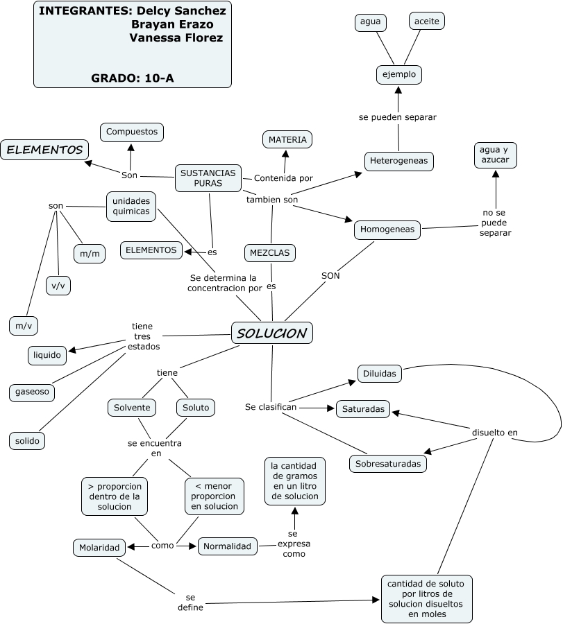 Este Cmap, tiene información relacionada con: MaTERIA, Homogeneas no se puede separar agua y azucar, Solvente se encuentra en < menor proporcion en solucion, > proporcion dentro de la solucion como Normalidad, v/v son unidades quimicas, Molaridad se define cantidad de soluto por litros de solucion disueltos en moles, SOLUCION SON Homogeneas, Diluidas disuelto en Sobresaturadas, < menor proporcion en solucion como Normalidad, MEZCLAS es SOLUCION, SOLUCION tiene tres estados liquido, Soluto se encuentra en > proporcion dentro de la solucion, SUSTANCIAS PURAS tambien son Heterogeneas, m/v son unidades quimicas, < menor proporcion en solucion como Molaridad, > proporcion dentro de la solucion como Molaridad, m/m son unidades quimicas, Soluto se encuentra en < menor proporcion en solucion, SOLUCION Se determina la concentracion por unidades quimicas, SOLUCION Se clasifican Sobresaturadas, Normalidad se expresa como la cantidad de gramos en un litro de solucion