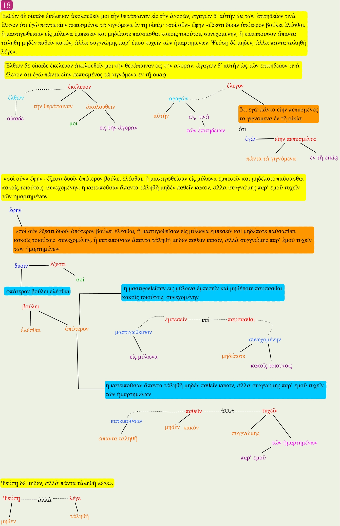 Este Cmap, tiene información relacionada con: frag. 18, συνεχομένην ???? παύσασθαι, ἐν τῇ οἰκίᾳ ???? εἴην πεπυσμένος, σοὶ ???? ἔξεστι, ἀγαγὼν ???? αὐτὴν, τῶν ἐπιτηδείων ???? ὡς τινὰ, μηδὲν ???? Ψεύσῃ, τἀληθῆ ???? λέγε, ἀγαγὼν ???? ἔλεγον, ἅπαντα τἀληθῆ ???? κατειποῦσαν, ὁπότερον ???? ἢ κατειποῦσαν ἅπαντα τἀληθῆ μηδὲν παθεῖν κακόν, ἀλλὰ συγγνώμης παρ’ ἐμοῦ τυχεῖν τῶν ἡμαρτημένων, συγγνώμης ???? τυχεῖν, κατειποῦσαν ???? παθεῖν, δυοῖν ???? ἔξεστι, ἐλθὼν ???? οἴκαδε, παρ’ ἐμοῦ ???? τῶν ἡμαρτημένων, λέγε ???? ἀλλὰ, ἀκολουθεῖν ???? ἐκέλευον, τὴν θεράπαιναν ???? ἐκέλευον, μηδὲν ???? παθεῖν, τῶν ἡμαρτημένων ???? τυχεῖν