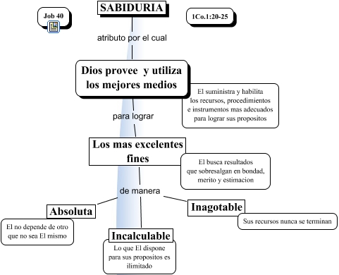 This Concept Map, created with IHMC CmapTools, has information related to: Sabiduria, Los mas excelentes fines de manera Absoluta, Los mas excelentes fines de manera Inagotable, SABIDURIA atributo por el cual Dios provee y utiliza los mejores medios, Los mas excelentes fines de manera Incalculable, Los mas excelentes fines para lograr Dios provee y utiliza los mejores medios
