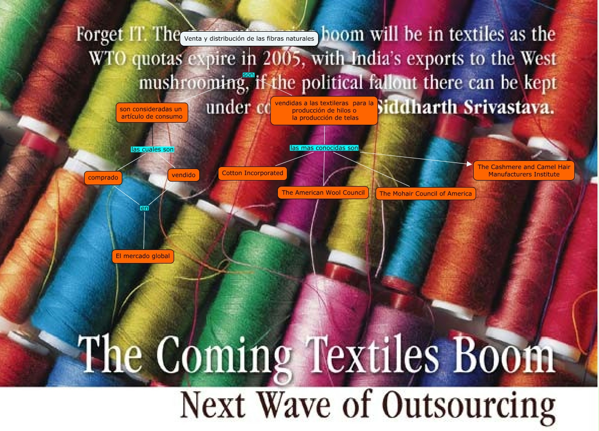 Este Cmap, tiene información relacionada con: benta y distribucion fibras naturales, Venta y distribución de las fibras naturales son vendidas a las textileras para la producción de hilos o la producción de telas, vendidas a las textileras para la producción de hilos o la producción de telas las mas conocidas son The Mohair Council of America, vendido en El mercado global, vendidas a las textileras para la producción de hilos o la producción de telas las mas conocidas son Cotton Incorporated, vendidas a las textileras para la producción de hilos o la producción de telas las mas conocidas son The Cashmere and Camel Hair Manufacturers Institute, son consideradas un artículo de consumo las cuales son vendido, comprado en El mercado global, Venta y distribución de las fibras naturales son son consideradas un artículo de consumo, vendidas a las textileras para la producción de hilos o la producción de telas las mas conocidas son The American Wool Council, son consideradas un artículo de consumo las cuales son comprado