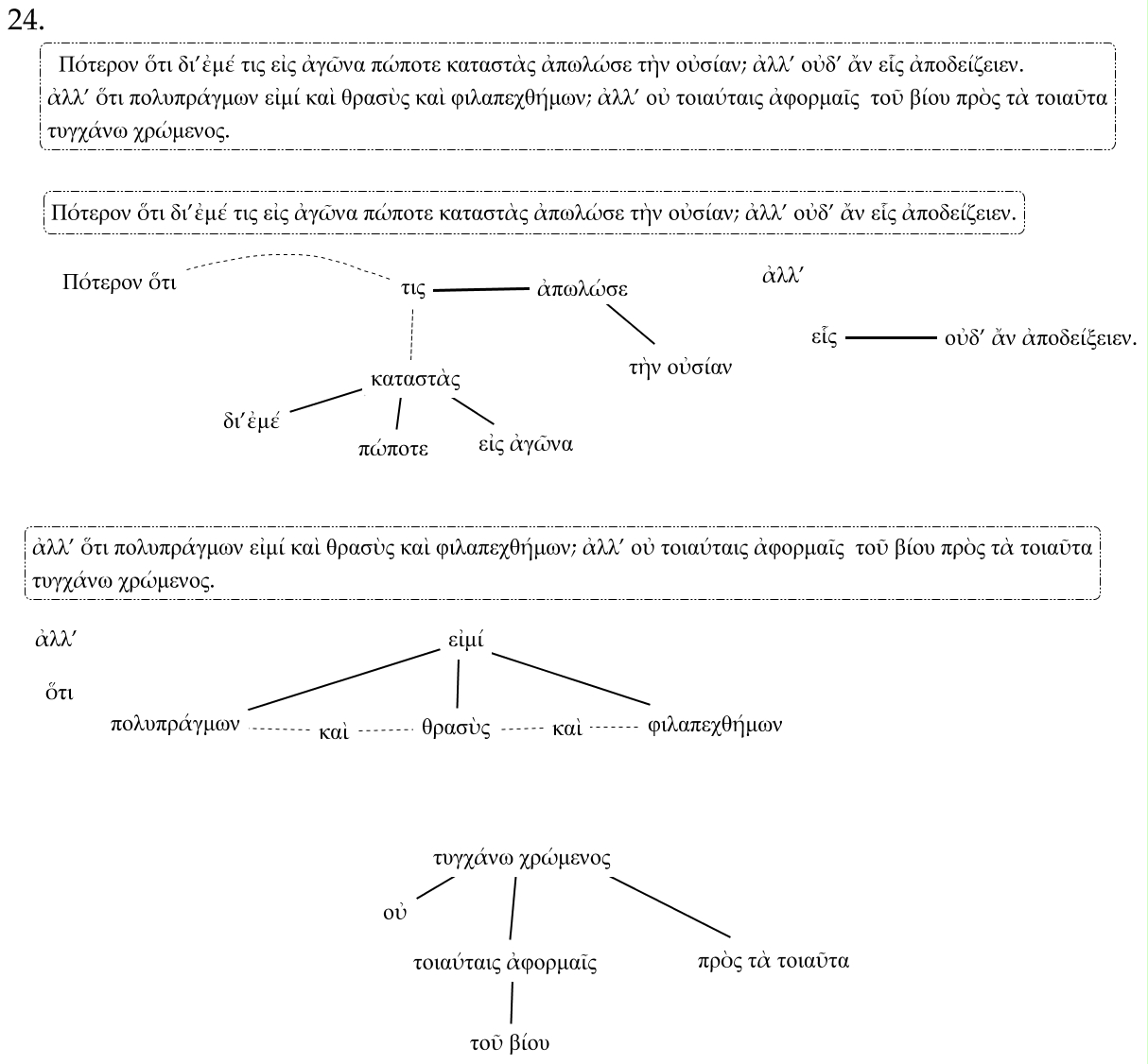 Este Cmap, tiene información relacionada con: frag.24 imprimir, τὴν οὐσίαν ???? ἀπωλώσε, πώποτε ???? καταστὰς, οὐ ???? τυγχάνω χρώμενος, καὶ ???? θρασὺς, πρὸς τὰ τοιαῦτα ???? τυγχάνω χρώμενος, θρασὺς ???? εἰμί, φιλαπεχθήμων ???? καὶ, εἰς ἀγῶνα ???? καταστὰς, δι’ἐμέ ???? καταστὰς, τοῦ βίου ???? τοιαύταις ἀφορμαῖς, εἷς ???? οὐδ’ ἄν ἀποδείξειεν., εἰμί ???? πολυπράγμων, καὶ ???? πολυπράγμων, ἀπωλώσε ???? τις, Πότερον ὅτι ???? τις, φιλαπεχθήμων ???? εἰμί, τοιαύταις ἀφορμαῖς ???? τυγχάνω χρώμενος, τις ???? καταστὰς, καὶ ???? θρασὺς