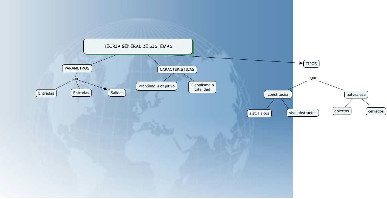 Este Cmap, tiene información relacionada con: tgsss, CARACTERISTICAS ???? Globalismo o totalidad, naturaleza ???? abiertos, CARACTERISTICAS ???? Propósito u objetivo, TEORIA GENERAL DE SISTEMAS ???? PARAMETROS, PARAMETROS son Entradas, PARAMETROS son Entradas, naturaleza ???? cerrados, constitución ???? sist. abstractos, TIPOS segun naturaleza, TEORIA GENERAL DE SISTEMAS sus TIPOS, constitución ???? sist. fisicos, TEORIA GENERAL DE SISTEMAS ???? CARACTERISTICAS, TIPOS segun constitución, PARAMETROS son Salidas