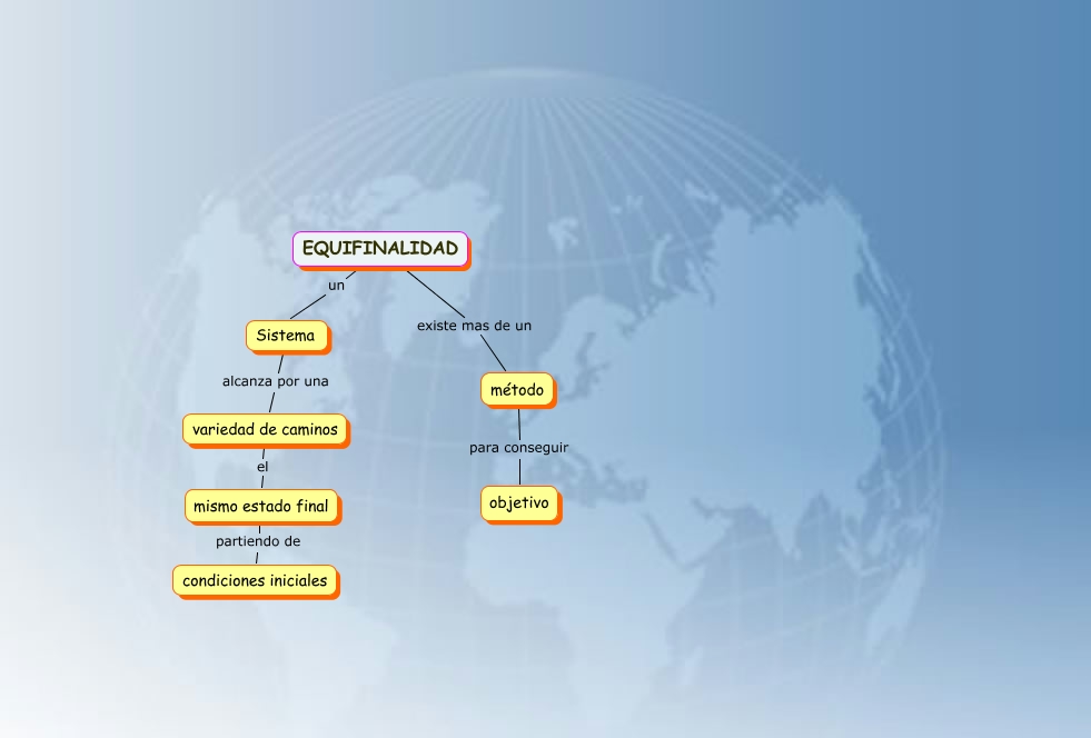 Este Cmap, tiene información relacionada con: equifinalidad, mismo estado final partiendo de condiciones iniciales, método para conseguir objetivo, EQUIFINALIDAD existe mas de un método, Sistema alcanza por una variedad de caminos, EQUIFINALIDAD un Sistema, variedad de caminos el mismo estado final