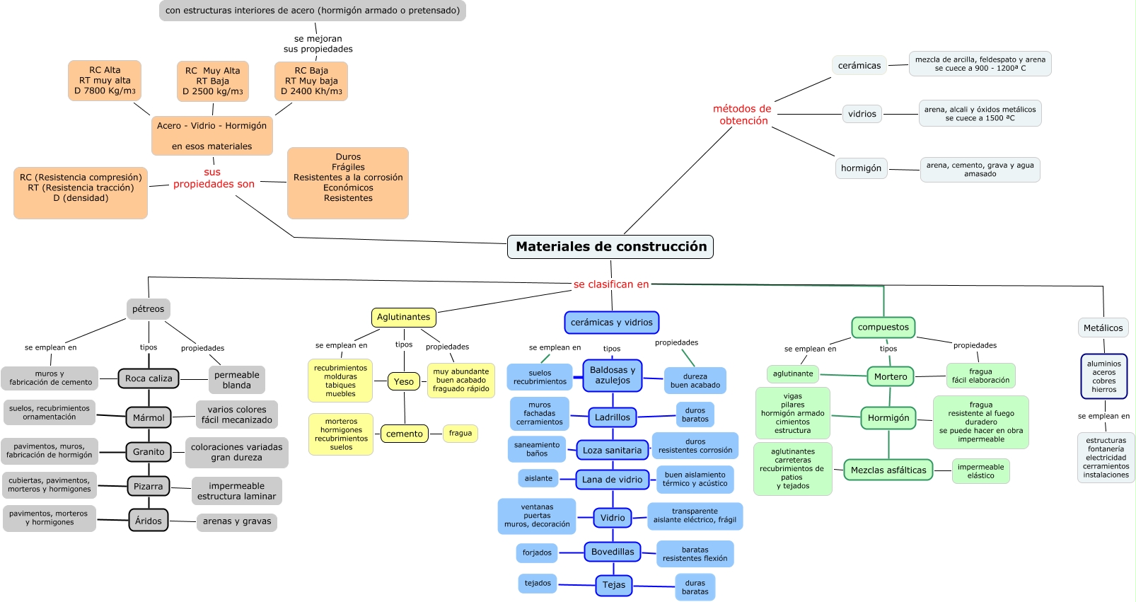 Este Cmap, tiene información relacionada con: materiales de construcción, Bovedillas forjados, Yeso recubrimientos molduras tabiques muebles, Bovedillas Tejas, Mezclas asfálticas impermeable elástico, Lana de vidrio aislante, Mortero Hormigón, Pizarra Áridos, Acero - Vidrio - Hormigón en esos materiales RC Muy Alta RT Baja D 2500 kg/m3, pétreos se emplean en muros y fabricación de cemento, Materiales de construcción se clasifican en Metálicos, Bovedillas baratas resistentes flexión, Baldosas y azulejos dureza buen acabado, Materiales de construcción se clasifican en cerámicas y vidrios, cerámicas y vidrios propiedades dureza buen acabado, Yeso muy abundante buen acabado fraguado rápido, Hormigón Mezclas asfálticas, pétreos propiedades permeable blanda, Materiales de construcción sus propiedades son Duros Frágiles Resistentes a la corrosión Económicos Resistentes, Materiales de construcción sus propiedades son RC (Resistencia compresión) RT (Resistencia tracción) D (densidad), vidrios arena, alcali y óxidos metálicos se cuece a 1500 ªC