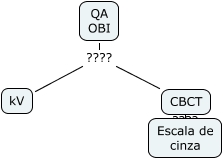 Esse mapa conceitual, produzido no IHMC CmapTools, tem a informação relacionada a: QA OBI, CBCT ???? Escala de cinza, QA OBI ???? kV, QA OBI ???? CBCT