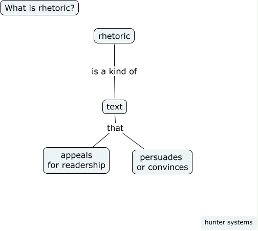 This Concept Map, created with IHMC CmapTools, has information related to: rhetoric kind of, text that appeals for readership, rhetoric is a kind of text, text that persuades or convinces