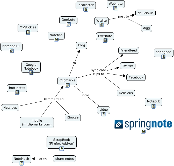 This Concept Map, created with IHMC CmapTools, has information related to: Note taking, Clipmarks syndicate clips to Delicious, Clipmarks syndicate clips to Facebook, Clipmarks intro video, Clipmarks syndicate clips to Friendfeed, mobile (m.clipmarks.com) comment on Clipmarks, Clipmarks to Blog, Wizlite post to del.icio.us, Clipmarks syndicate clips to Twitter, Netvibes comment on Clipmarks, share notes using NoteMesh, Wizlite post to digg, iGoogle comment on Clipmarks