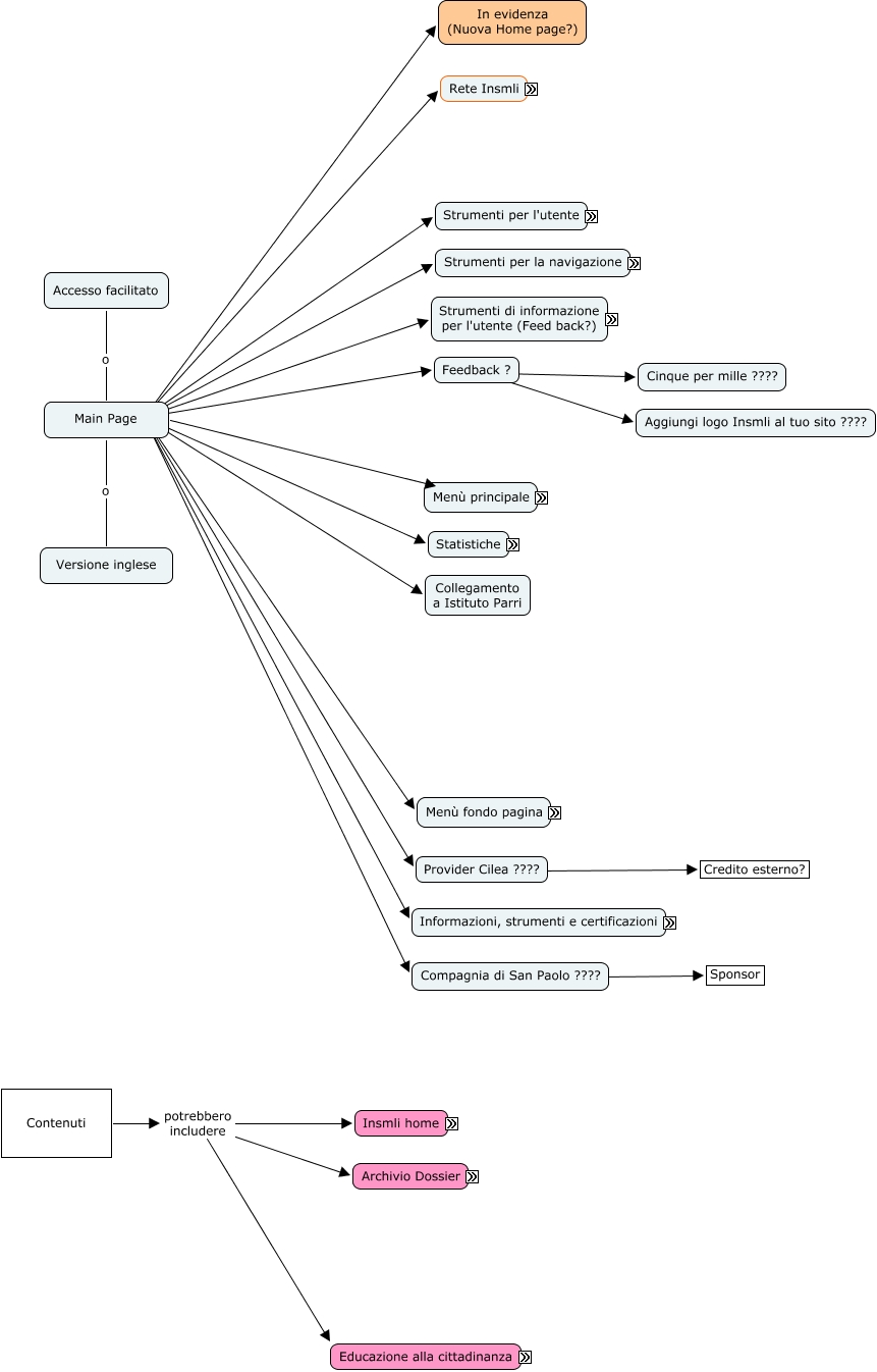 Questa Cmap, creata con IHMC CmapTools, contiene informazioni relative a: Portale_20090624, Pubblicazioni Riviste della rete, Accessibilità Navigazione vocale, Scuola superiore di studi di storia contemporanea Statuto SSSSC, Main Page ???? Provider Cilea ????, Servizi archivistici Archivi cartacei, Sezioni Schede, Formazione Una memoria per il futuro, 60° anniversario della Costituzione Italiana Dossier sulla Costituzione Italiana, Menù inferiore Accessibilità, Main Page ???? Statistiche, Giornata della memoria Dossier Giornata della memoria, Archivio media ???? Video, Main Page Menù principale Chi siamo, Archivio Dossier ???? 60° anniversario della Liberazione Il percorso della libertà, Archivio Dossier Seleziona dossier per anno (TENDINA), Risorse on line Servizi archivistici, Risorse on line Ultime lettere. Base di dati, Diapositive Cerca in archivio dossier (Campo di ricerca multiplo TENDINA-CAMPO LIBERO), Attività di formazione Relazioni, Risorse on line Servizi bibliografici