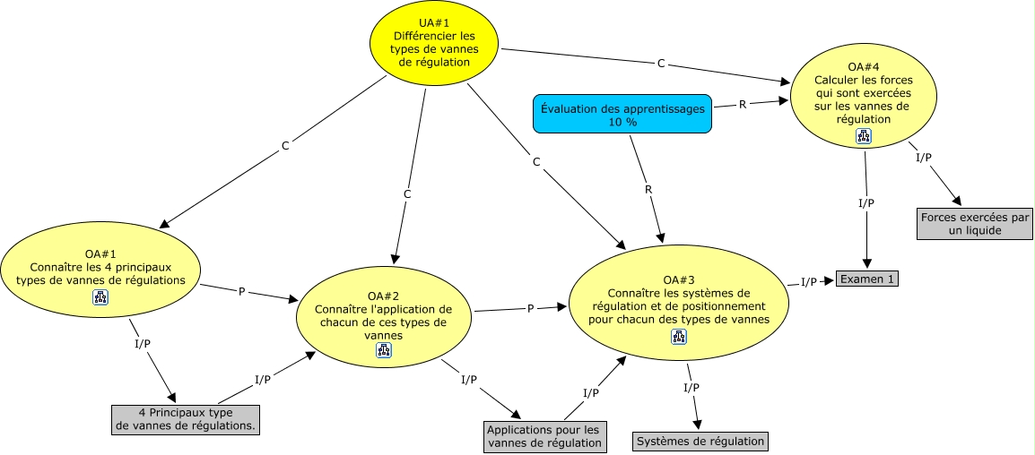 Cette carte de concepts créée avec IHMC CmapTools traite de: UA1, Applications pour les vannes de régulation I/P OA#3 Connaître les systèmes de régulation et de positionnement pour chacun des types de vannes, OA#3 Connaître les systèmes de régulation et de positionnement pour chacun des types de vannes I/P Examen 1, OA#2 Connaître l'application de chacun de ces types de vannes P OA#3 Connaître les systèmes de régulation et de positionnement pour chacun des types de vannes, 4 Principaux type de vannes de régulations. I/P OA#2 Connaître l'application de chacun de ces types de vannes, Évaluation des apprentissages 10 % R OA#3 Connaître les systèmes de régulation et de positionnement pour chacun des types de vannes, UA#1 Différencier les types de vannes de régulation C OA#4 Calculer les forces qui sont exercées sur les vannes de régulation, UA#1 Différencier les types de vannes de régulation C OA#2 Connaître l'application de chacun de ces types de vannes, OA#4 Calculer les forces qui sont exercées sur les vannes de régulation I/P Forces exercées par un liquide, OA#1 Connaître les 4 principaux types de vannes de régulations I/P 4 Principaux type de vannes de régulations., OA#1 Connaître les 4 principaux types de vannes de régulations P OA#2 Connaître l'application de chacun de ces types de vannes, Évaluation des apprentissages 10 % R OA#4 Calculer les forces qui sont exercées sur les vannes de régulation, UA#1 Différencier les types de vannes de régulation C OA#1 Connaître les 4 principaux types de vannes de régulations, UA#1 Différencier les types de vannes de régulation C OA#3 Connaître les systèmes de régulation et de positionnement pour chacun des types de vannes, OA#4 Calculer les forces qui sont exercées sur les vannes de régulation I/P Examen 1, OA#2 Connaître l'application de chacun de ces types de vannes I/P Applications pour les vannes de régulation, OA#3 Connaître les systèmes de régulation et de positionnement pour chacun des types de vannes I/P Systèmes de régulation