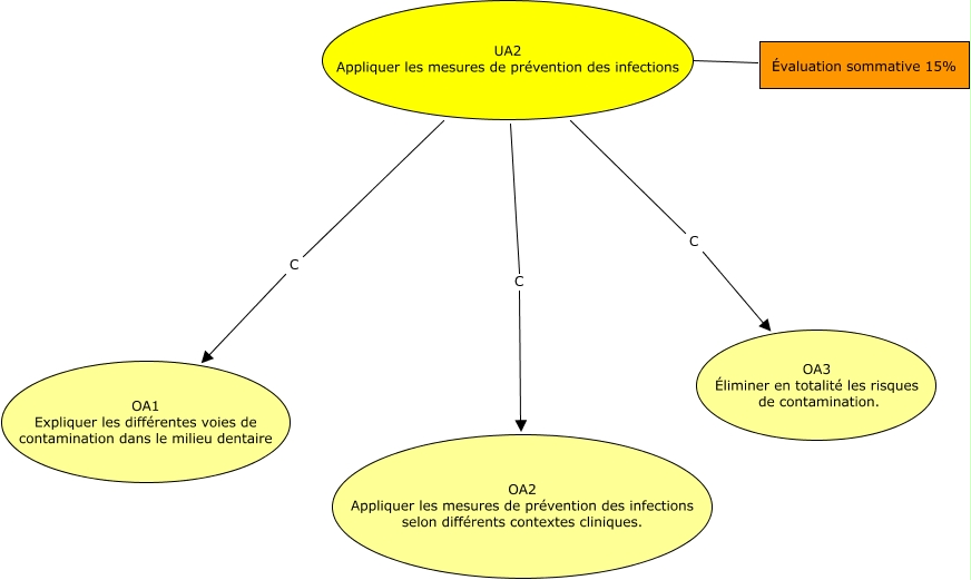 Cette carte de concepts créée avec IHMC CmapTools traite de: UA2, UA2 Appliquer les mesures de prévention des infections C OA1 Expliquer les différentes voies de contamination dans le milieu dentaire, UA2 Appliquer les mesures de prévention des infections C OA2 Appliquer les mesures de prévention des infections selon différents contextes cliniques., UA2 Appliquer les mesures de prévention des infections C OA3 Éliminer en totalité les risques de contamination., UA2 Appliquer les mesures de prévention des infections ???? Évaluation sommative 15%