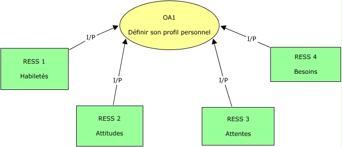 Cette carte de concepts créée avec IHMC CmapTools traite de: 1OA1, RESS 1 Habiletés I/P OA1 Définir son profil personnel, RESS 3 Attentes I/P OA1 Définir son profil personnel, RESS 2 Attitudes I/P OA1 Définir son profil personnel, RESS 4 Besoins I/P OA1 Définir son profil personnel