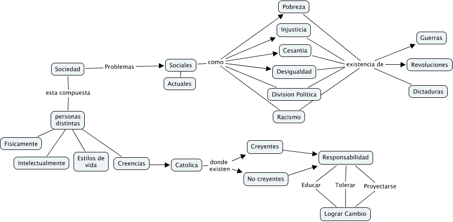 Este Cmap, tiene información relacionada con: borrador segunda mitad sxx L.A, personas distintas ???? Creencias, personas distintas ???? Intelectualmente, Sociedad esta compuesta personas distintas, Responsabilidad Tolerar Lograr Cambio, Sociales como Pobreza, Catolica donde existen Creyentes, Pobreza existencia de Revoluciones, Desigualdad existencia de Revoluciones, Racismo existencia de Guerras, Sociales como Racismo, Injusticia existencia de Dictaduras, Sociales como Desigualdad, Cesantia existencia de Revoluciones, Cesantia existencia de Dictaduras, Cesantia existencia de Guerras, No creyentes ???? Responsabilidad, Creencias ???? Catolica, Responsabilidad Proyectarse Lograr Cambio, Desigualdad existencia de Guerras, Pobreza existencia de Guerras