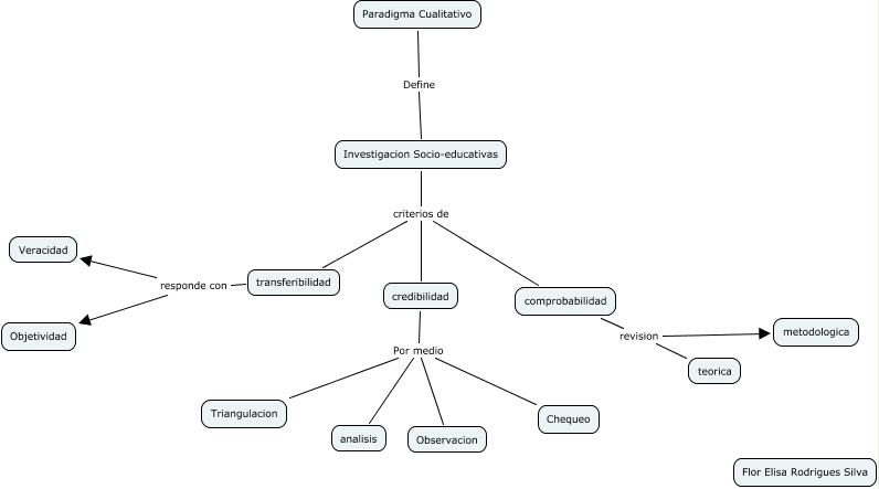 Este Cmap, tiene información relacionada con: Paradigma Cualitativo, Investigacion Socio-educativas criterios de transferibilidad, credibilidad Por medio Observacion, comprobabilidad revision teorica, comprobabilidad revision metodologica, Investigacion Socio-educativas criterios de comprobabilidad, credibilidad Por medio Chequeo, Paradigma Cualitativo Define Investigacion Socio-educativas, Investigacion Socio-educativas criterios de credibilidad, transferibilidad responde con Objetividad, credibilidad Por medio analisis, credibilidad Por medio Triangulacion, transferibilidad responde con Veracidad