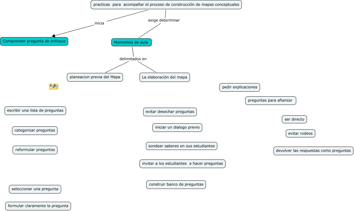 Este Cmap, tiene información relacionada con: practicas, practicas para acompañar el proceso de construcción de mapas conceptuales exige determinar Momentos de aula, practicas para acompañar el proceso de construcción de mapas conceptuales inicia Comprender pregunta de enfoque, Momentos de aula delimitados en La elaboración del mapa, Momentos de aula delimitados en planeacion previa del Mapa