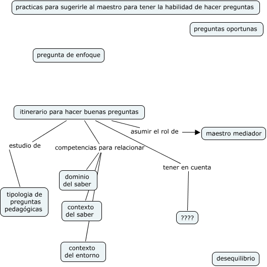 Este Cmap, tiene información relacionada con: itinerario, itinerario para hacer buenas preguntas competencias para relacionar dominio del saber, itinerario para hacer buenas preguntas tener en cuenta ????, itinerario para hacer buenas preguntas asumir el rol de maestro mediador, itinerario para hacer buenas preguntas competencias para relacionar contexto del entorno, itinerario para hacer buenas preguntas competencias para relacionar contexto del saber, itinerario para hacer buenas preguntas estudio de tipologia de preguntas pedagógicas