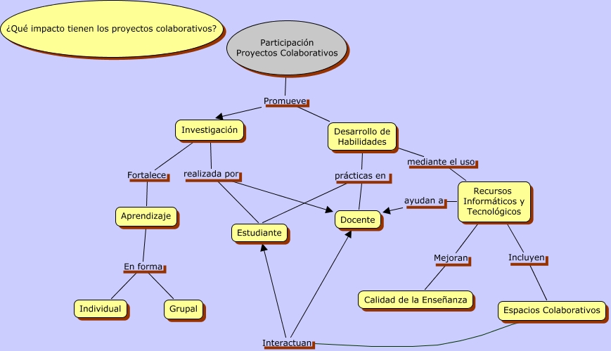 Este Cmap, tiene información relacionada con: Proyectos Colaborativos, Desarrollo de Habilidades prácticas en Docente, Investigación Fortalece Aprendizaje, Aprendizaje En forma Individual, Recursos Informáticos y Tecnológicos Incluyen Espacios Colaborativos, Desarrollo de Habilidades prácticas en Estudiante, Investigación realizada por Docente, Aprendizaje En forma Grupal, Recursos Informáticos y Tecnológicos ayudan a Docente, Espacios Colaborativos Interactuan Docente, Desarrollo de Habilidades mediante el uso Recursos Informáticos y Tecnológicos, Investigación realizada por Estudiante, Participación Proyectos Colaborativos Promueve Desarrollo de Habilidades, Participación Proyectos Colaborativos Promueve Investigación, Recursos Informáticos y Tecnológicos Mejoran Calidad de la Enseñanza, Espacios Colaborativos Interactuan Estudiante