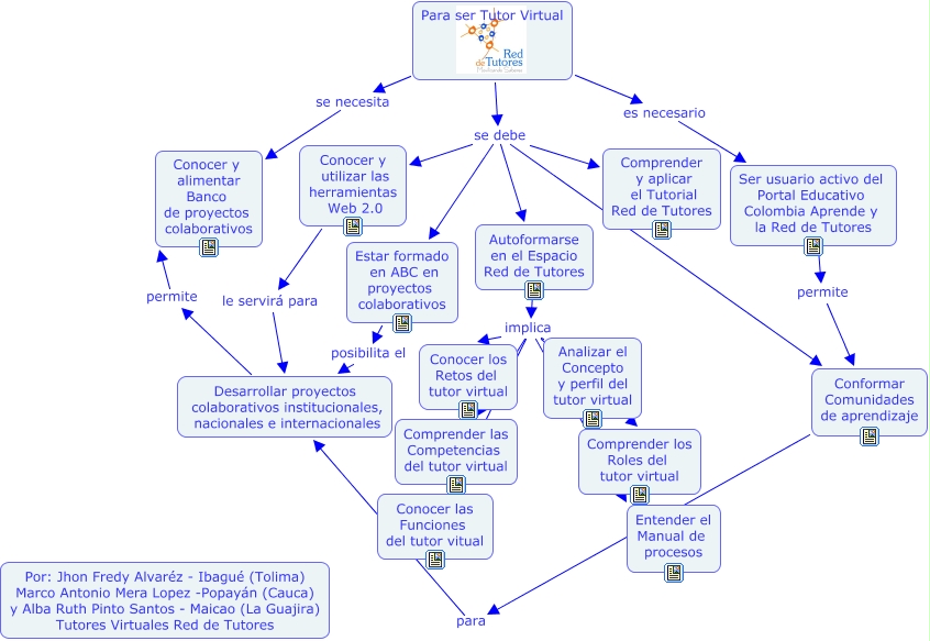 Este Cmap, tiene información relacionada con: Itenerario Tutorial Red de Tutores, Estar formado en ABC en proyectos colaborativos posibilita el Desarrollar proyectos colaborativos institucionales, nacionales e internacionales, Autoformarse en el Espacio Red de Tutores implica Analizar el Concepto y perfil del tutor virtual, Autoformarse en el Espacio Red de Tutores implica Conocer los Retos del tutor virtual, Para ser Tutor Virtual se debe Autoformarse en el Espacio Red de Tutores, Para ser Tutor Virtual se necesita Conocer y alimentar Banco de proyectos colaborativos, Autoformarse en el Espacio Red de Tutores implica Comprender las Competencias del tutor virtual, Desarrollar proyectos colaborativos institucionales, nacionales e internacionales permite Conocer y alimentar Banco de proyectos colaborativos, Autoformarse en el Espacio Red de Tutores implica Conocer las Funciones del tutor vitual, Para ser Tutor Virtual se debe Conocer y utilizar las herramientas Web 2.0, Autoformarse en el Espacio Red de Tutores implica Comprender los Roles del tutor virtual, Para ser Tutor Virtual se debe Estar formado en ABC en proyectos colaborativos, Autoformarse en el Espacio Red de Tutores implica Entender el Manual de procesos, Para ser Tutor Virtual se debe Conformar Comunidades de aprendizaje, Conocer y utilizar las herramientas Web 2.0 le servirá para Desarrollar proyectos colaborativos institucionales, nacionales e internacionales, Ser usuario activo del Portal Educativo Colombia Aprende y la Red de Tutores permite Conformar Comunidades de aprendizaje, Conformar Comunidades de aprendizaje para Desarrollar proyectos colaborativos institucionales, nacionales e internacionales, Para ser Tutor Virtual se debe Comprender y aplicar el Tutorial Red de Tutores, Para ser Tutor Virtual es necesario Ser usuario activo del Portal Educativo Colombia Aprende y la Red de Tutores