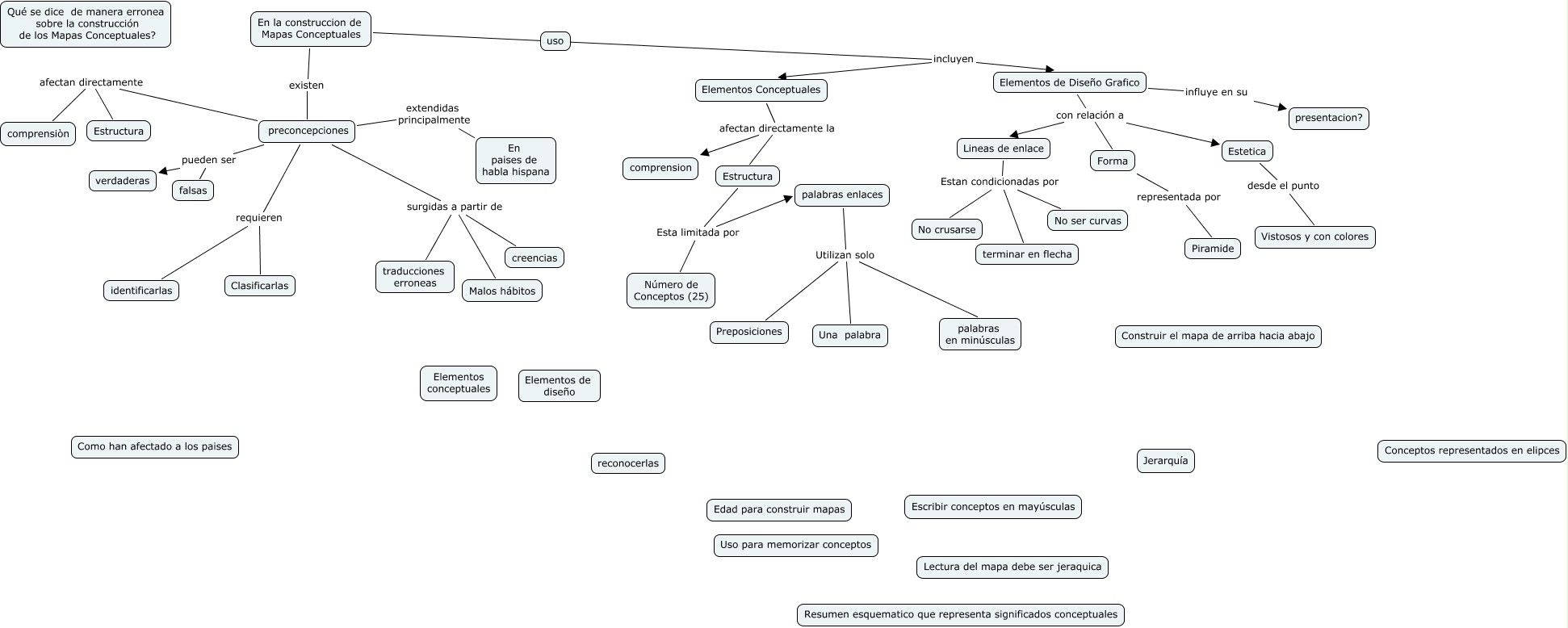 Este Cmap, tiene información relacionada con: Preconcepciones sobre Mapas conceptuales, Elementos Conceptuales afectan directamente la comprension, Lineas de enlace Estan condicionadas por terminar en flecha, preconcepciones afectan directamente comprensiòn, Estructura Esta limitada por palabras enlaces, Forma representada por Piramide, palabras enlaces Utilizan solo Una palabra, Lineas de enlace Estan condicionadas por No ser curvas, preconcepciones pueden ser falsas, Elementos de Diseño Grafico con relación a Estetica, Estructura Esta limitada por Número de Conceptos (25), Elementos Conceptuales afectan directamente la Estructura, preconcepciones requieren Clasificarlas, palabras enlaces Utilizan solo Preposiciones, En la construccion de Mapas Conceptuales existen preconcepciones, En la construccion de Mapas Conceptuales incluyen Elementos de Diseño Grafico, preconcepciones pueden ser verdaderas, Estetica desde el punto Vistosos y con colores, Elementos de Diseño Grafico con relación a Lineas de enlace, En la construccion de Mapas Conceptuales incluyen Elementos Conceptuales, Lineas de enlace Estan condicionadas por No crusarse