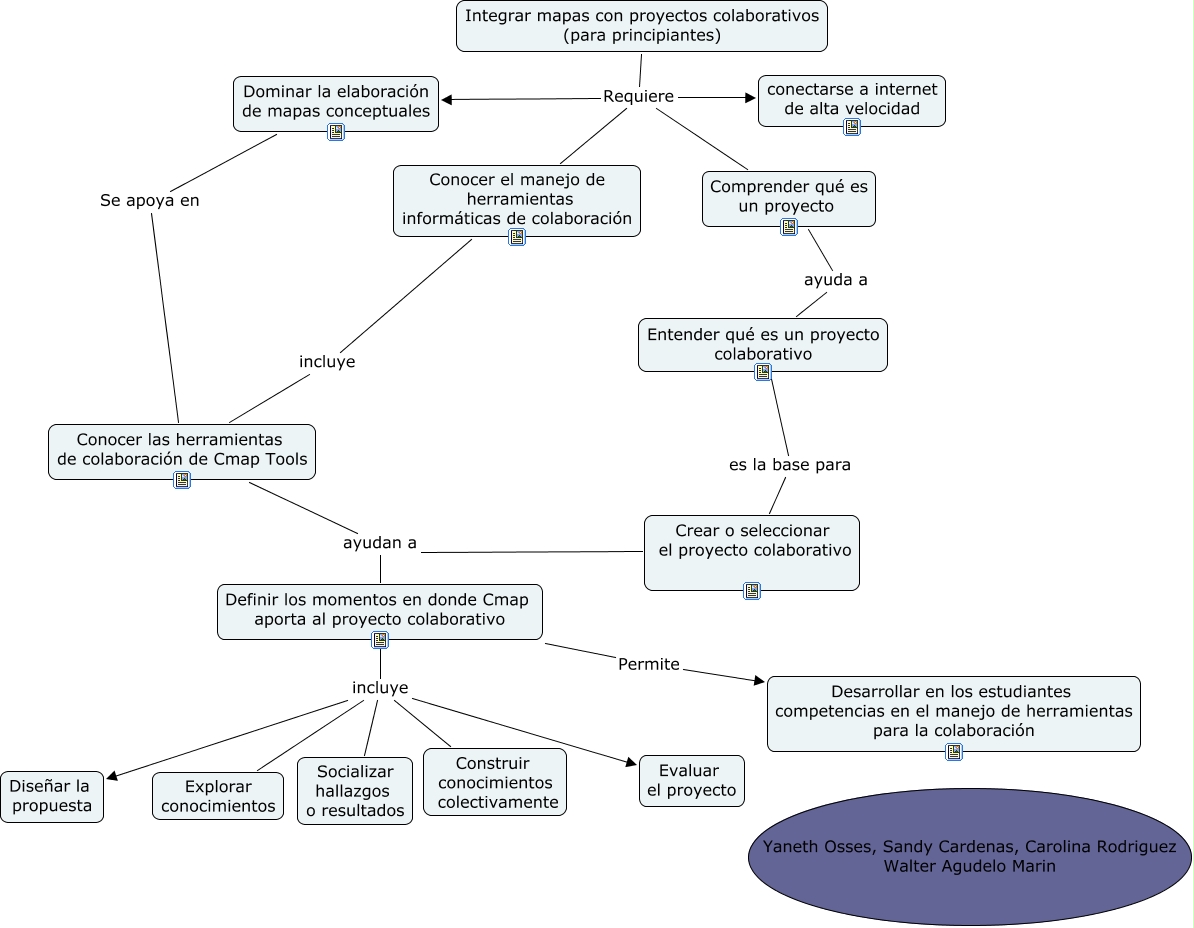 Este Cmap, tiene información relacionada con: Itinerario integrar proyectos colaborativos, Integrar mapas con proyectos colaborativos (para principiantes) Requiere Comprender qué es un proyecto, Definir los momentos en donde Cmap aporta al proyecto colaborativo incluye Socializar hallazgos o resultados, Conocer las herramientas de colaboración de Cmap Tools ayudan a Definir los momentos en donde Cmap aporta al proyecto colaborativo, Definir los momentos en donde Cmap aporta al proyecto colaborativo incluye Diseñar la propuesta, Comprender qué es un proyecto ayuda a Entender qué es un proyecto colaborativo, Entender qué es un proyecto colaborativo es la base para Crear o seleccionar el proyecto colaborativo, Definir los momentos en donde Cmap aporta al proyecto colaborativo incluye Evaluar el proyecto, Integrar mapas con proyectos colaborativos (para principiantes) Requiere Dominar la elaboración de mapas conceptuales, Integrar mapas con proyectos colaborativos (para principiantes) Requiere conectarse a internet de alta velocidad, Integrar mapas con proyectos colaborativos (para principiantes) Requiere Conocer el manejo de herramientas informáticas de colaboración, Definir los momentos en donde Cmap aporta al proyecto colaborativo incluye Explorar conocimientos, Crear o seleccionar el proyecto colaborativo ayudan a Definir los momentos en donde Cmap aporta al proyecto colaborativo, Definir los momentos en donde Cmap aporta al proyecto colaborativo Permite Desarrollar en los estudiantes competencias en el manejo de herramientas para la colaboración, Conocer el manejo de herramientas informáticas de colaboración incluye Conocer las herramientas de colaboración de Cmap Tools, Dominar la elaboración de mapas conceptuales Se apoya en Conocer las herramientas de colaboración de Cmap Tools, Definir los momentos en donde Cmap aporta al proyecto colaborativo incluye Construir conocimientos colectivamente