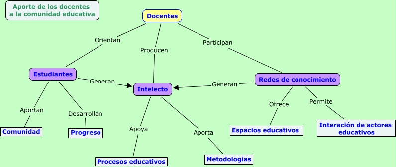 Este Cmap, tiene información relacionada con: Primer mapa, Intelecto Aporta Metodologias, Docentes Participan Redes de conocimiento, Redes de conocimiento Generan Intelecto, Docentes Orientan Estudiantes, Estudiantes Desarrollan Progreso, Estudiantes Aportan Comunidad, Intelecto Apoya Procesos educativos, Docentes Producen Intelecto, Estudiantes Generan Intelecto, Redes de conocimiento Ofrece Espacios educativos, Redes de conocimiento Permite Interación de actores educativos