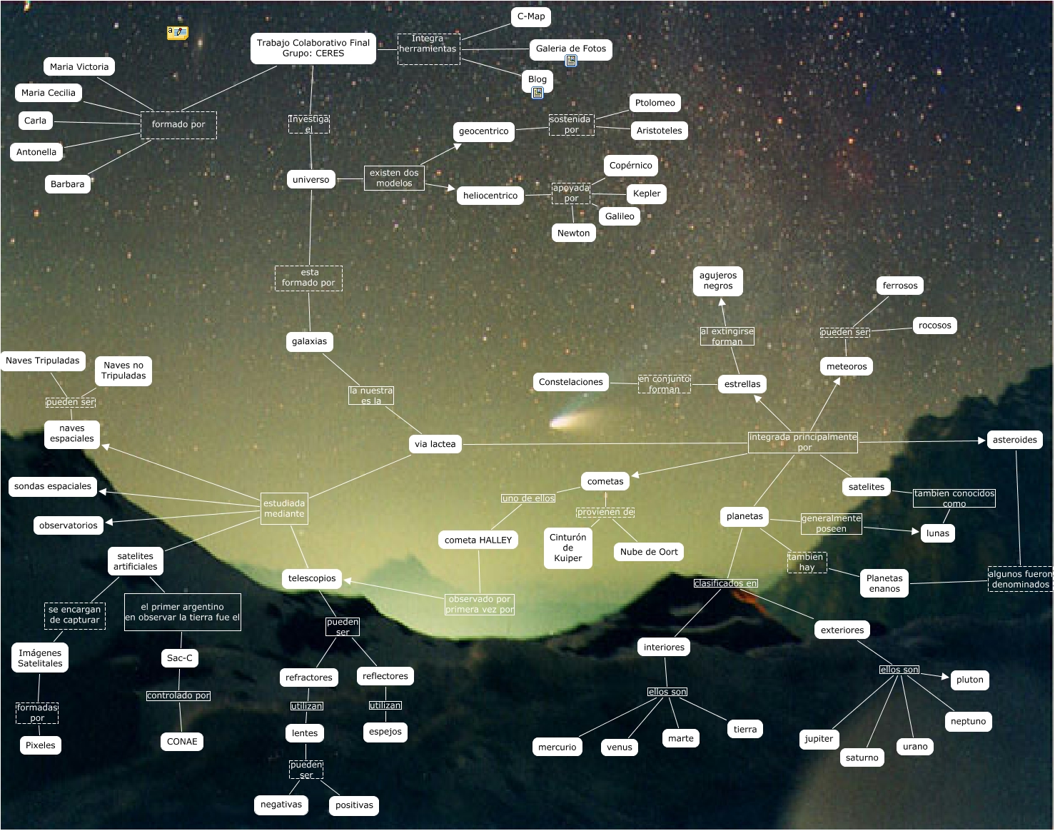 Este Cmap, tiene información relacionada con: ceres ejemplo de mapa, via lactea estudiada mediante telescopios, Trabajo Colaborativo Final Grupo: CERES formado por Barbara, Trabajo Colaborativo Final Grupo: CERES Integra herramientas Blog, via lactea estudiada mediante satelites artificiales, reflectores utilizan espejos, interiores ellos son mercurio, via lactea integrada principalmente por asteroides, cometas provienen de Cinturón de Kuiper, cometa HALLEY observado por primera vez por telescopios, via lactea integrada principalmente por cometas, planetas clasificados en exteriores, asteroides algunos fueron denominados Planetas enanos, estrellas al extingirse forman agujeros negros, refractores utilizan lentes, interiores ellos son venus, universo existen dos modelos heliocentrico, Trabajo Colaborativo Final Grupo: CERES Integra herramientas C-Map, satelites artificiales el primer argentino en observar la tierra fue el Sac-C, exteriores ellos son pluton, Imágenes Satelitales formadas por Pixeles