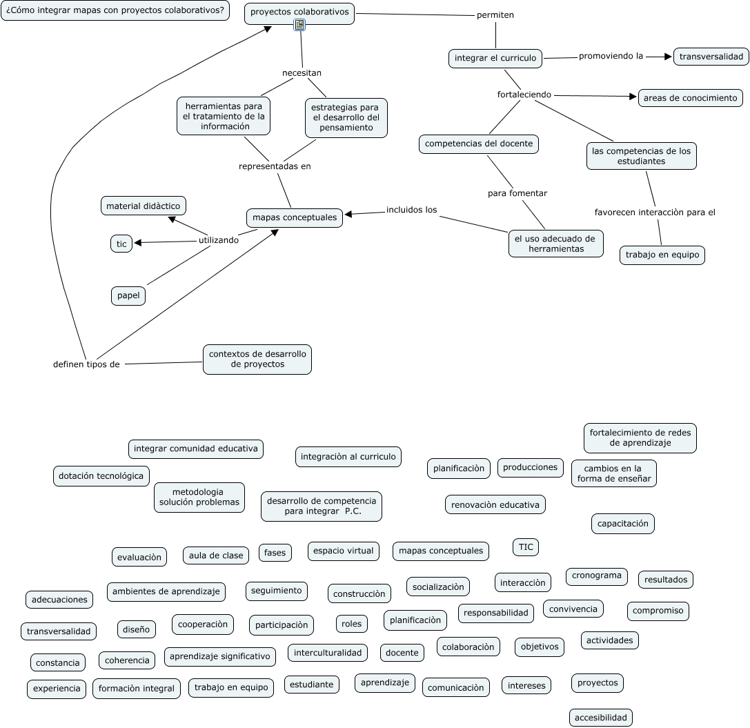 Este Cmap, tiene información relacionada con: Colaboración, integrar el curriculo fortaleciendo competencias del docente, contextos de desarrollo de proyectos definen tipos de proyectos colaborativos, integrar el curriculo fortaleciendo areas de conocimiento, competencias del docente para fomentar el uso adecuado de herramientas, herramientas para el tratamiento de la información representadas en mapas conceptuales, integrar el curriculo fortaleciendo las competencias de los estudiantes, mapas conceptuales utilizando material didàctico, las competencias de los estudiantes favorecen interacciòn para el trabajo en equipo, contextos de desarrollo de proyectos definen tipos de mapas conceptuales, mapas conceptuales utilizando papel, integrar el curriculo promoviendo la transversalidad, mapas conceptuales utilizando tic, proyectos colaborativos permiten integrar el curriculo, proyectos colaborativos necesitan herramientas para el tratamiento de la información, el uso adecuado de herramientas incluidos los mapas conceptuales, proyectos colaborativos necesitan estrategias para el desarrollo del pensamiento, estrategias para el desarrollo del pensamiento representadas en mapas conceptuales